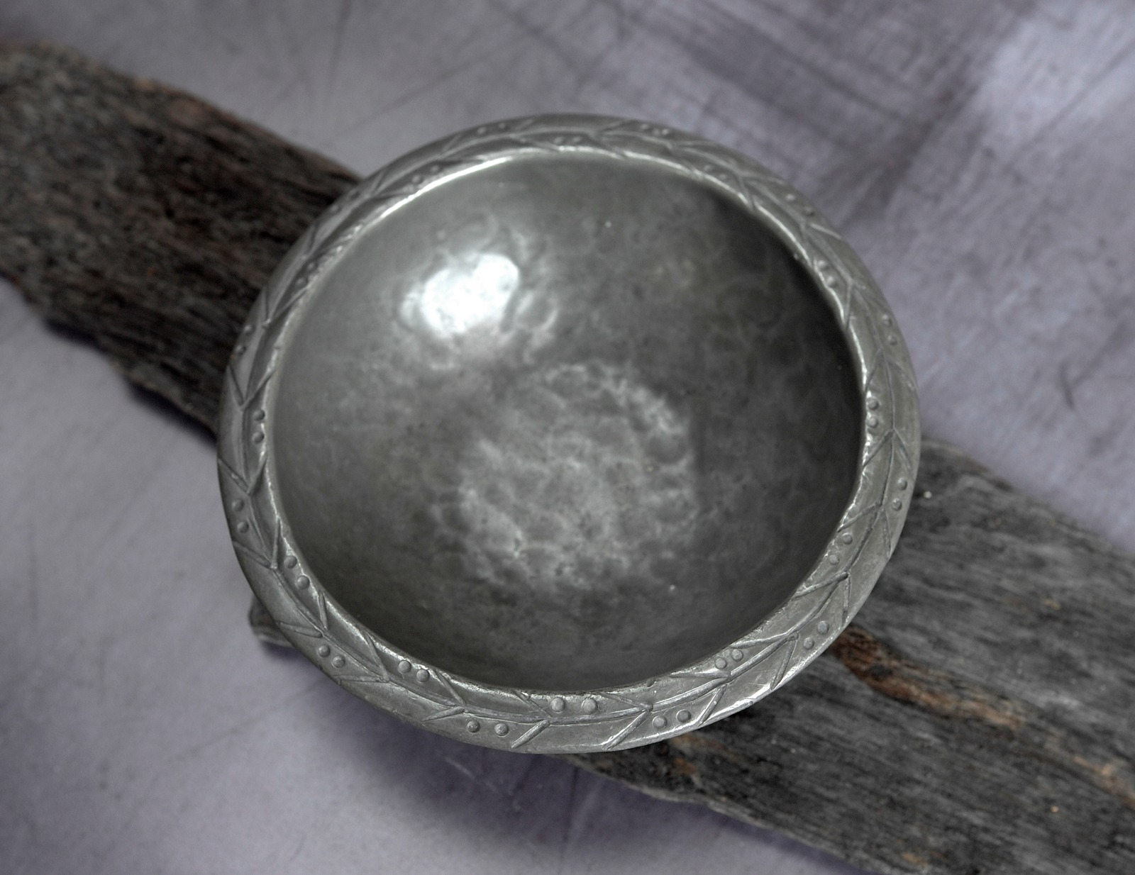 Arts & Crafts Pewter Bowl by Hugh Wallis, Hammered with Dot & Line Decoration c.1910