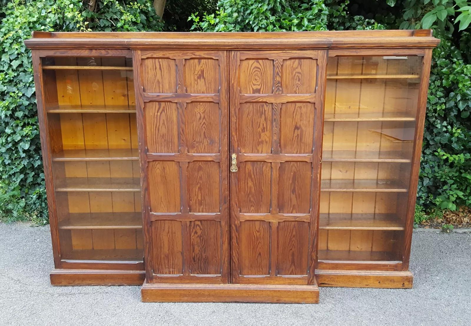 Arts & Crafts Pitch Pine Breakfront Library Bookcase