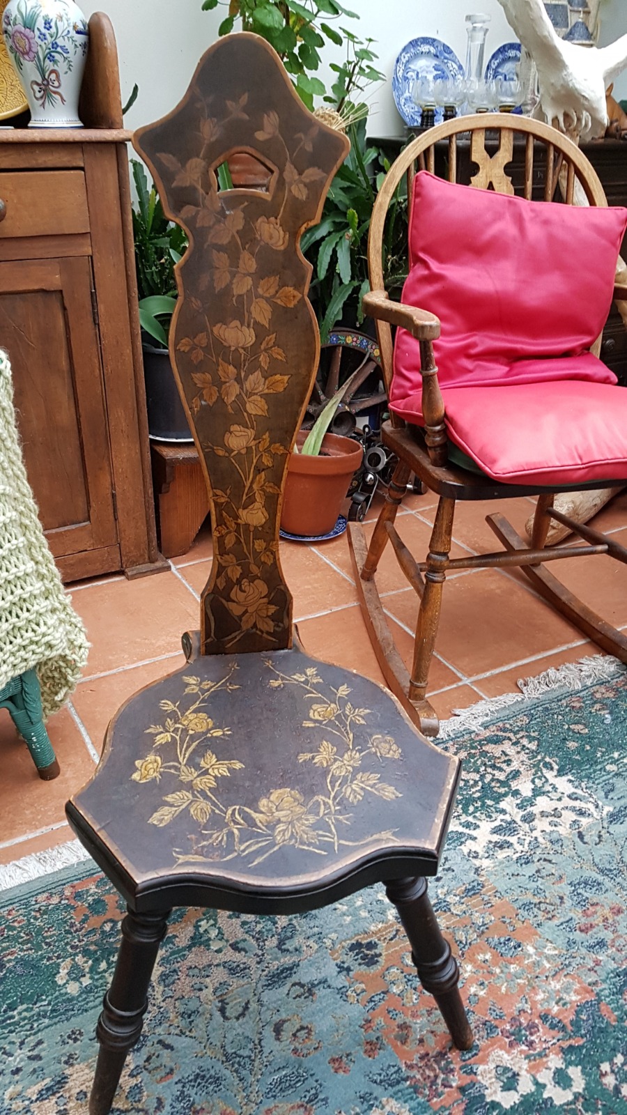 Arts & Crafts Scottish Spinning Chair or Stool - Poker Work Roses