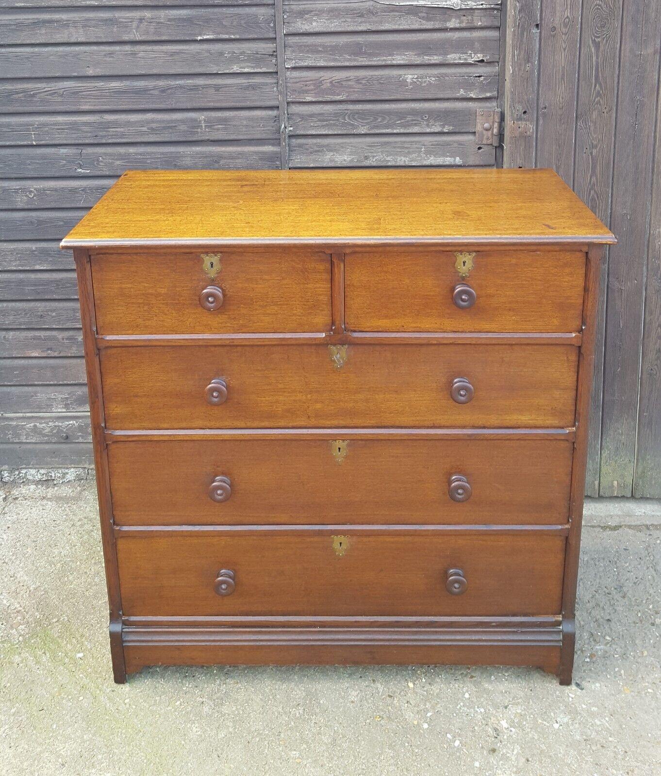 Arts & Crafts Solid Oak Chest Of 5 Drawers