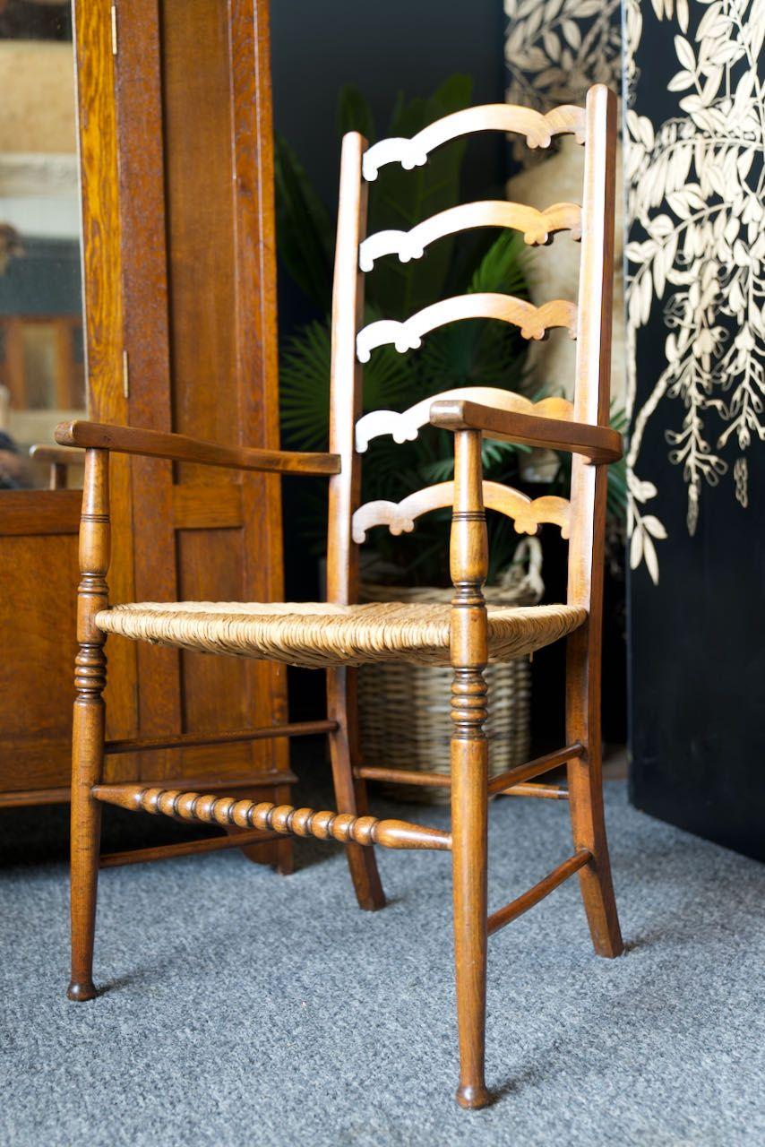 Arts & Crafts Solid Oak Ladder Back Occasional Chair Rush Seat