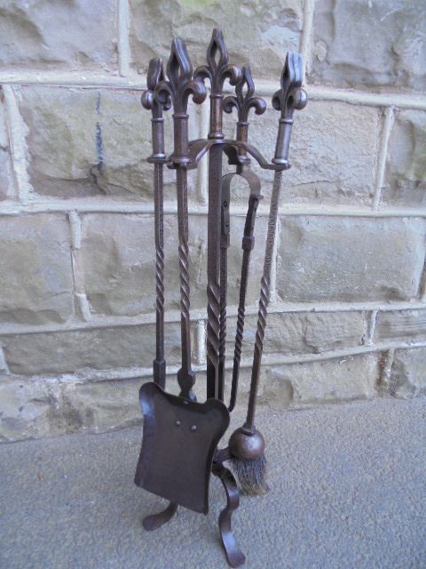 Arts & Crafts Steel Fire Irons on Stand c.1900