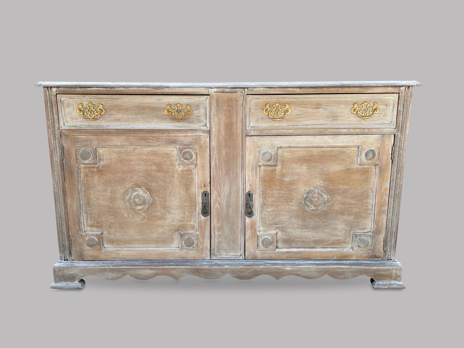 Arts & Crafts Stripped & Limed Oak Dresser Base