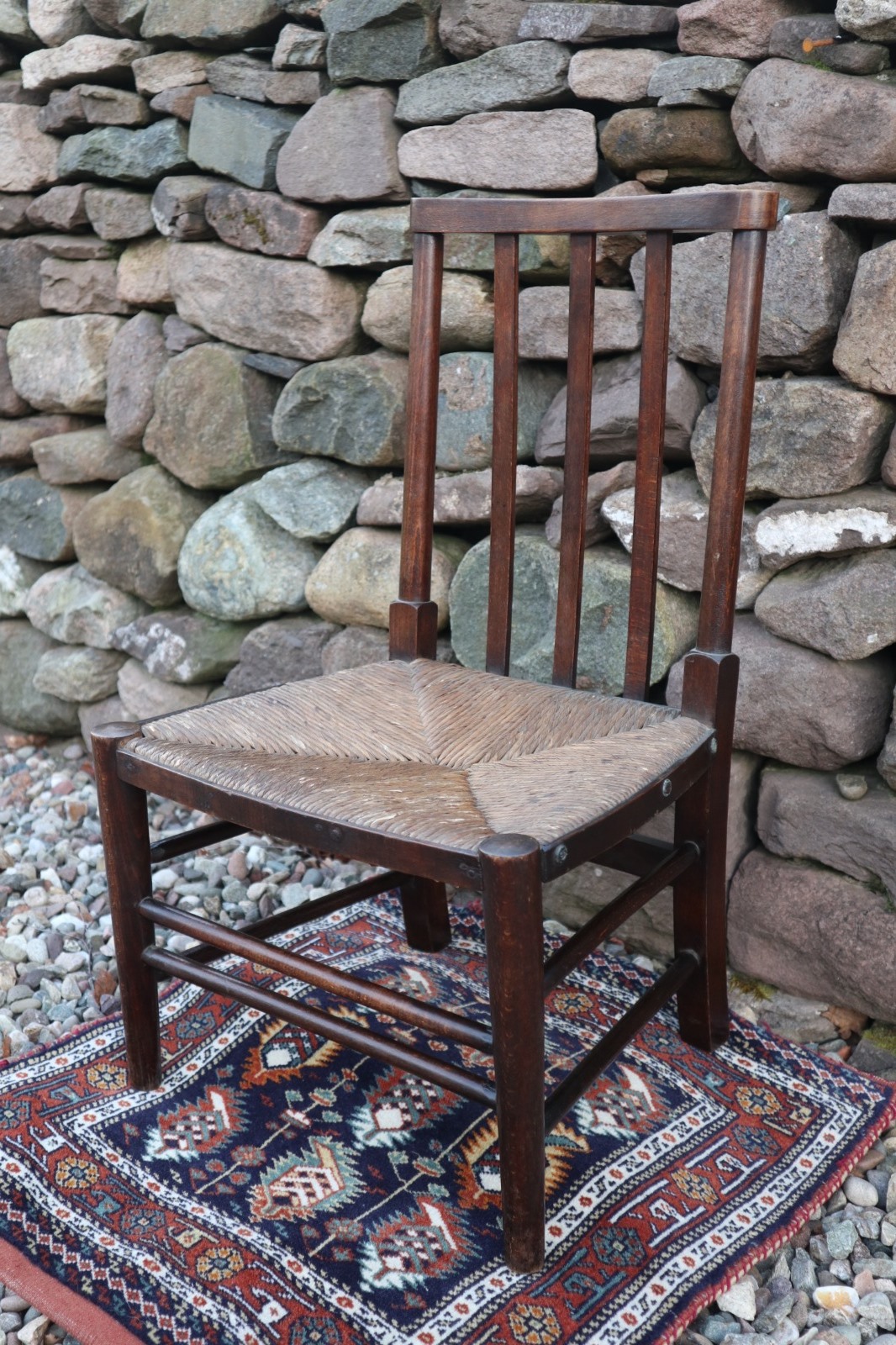 Arts & Crafts Style Childs Dark Oak & Rush Seated Wooden Chair C.1945