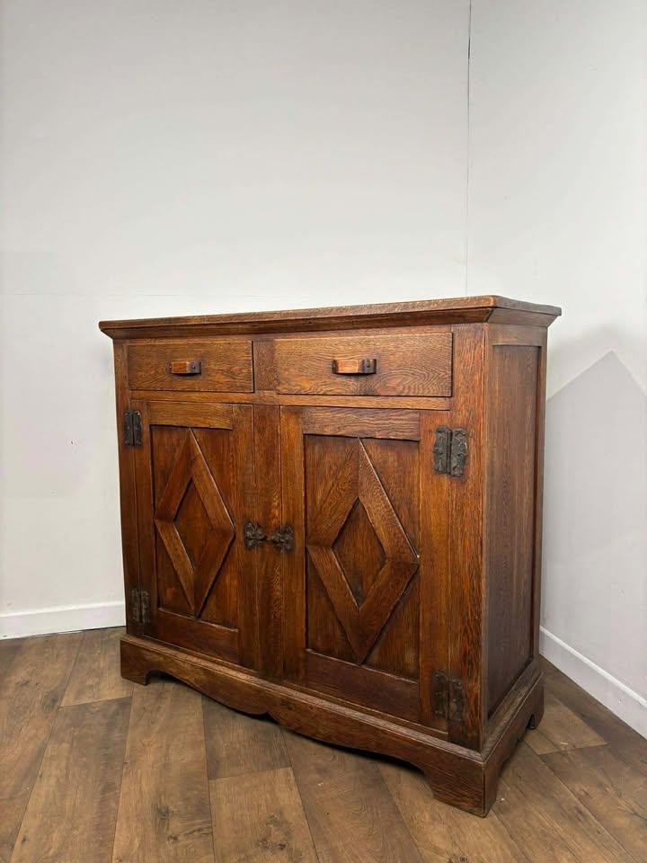 A superb Arts & Crafts style cabinet, made from solid oak and notable for its weight, craftsmanship, and honest construction.