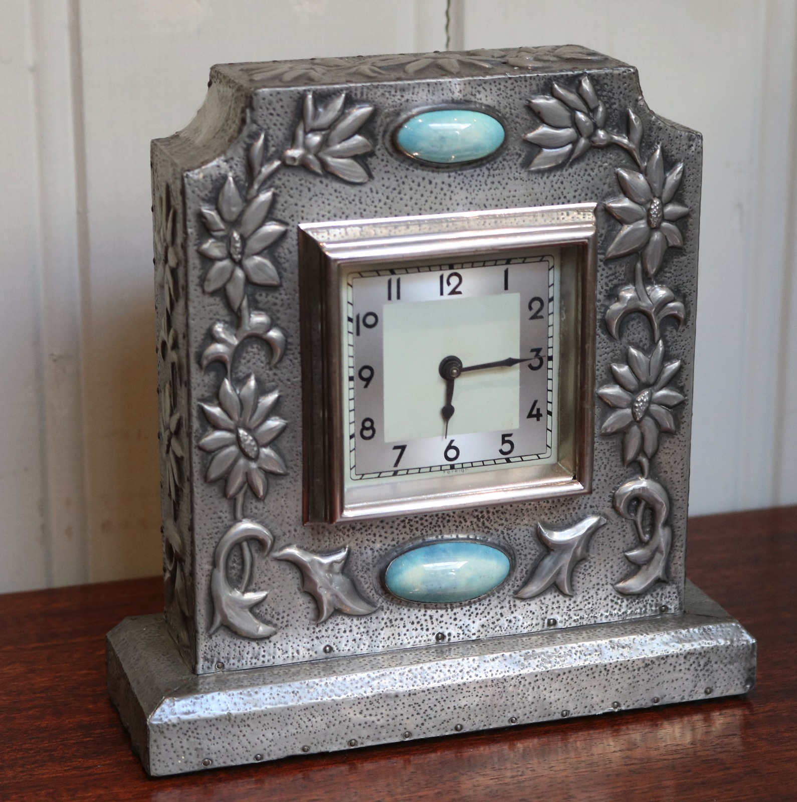 Arts & Crafts Style Pewter Mantel Clock c.1920