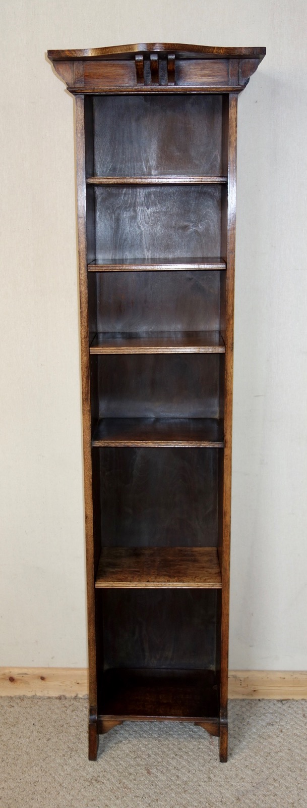 Arts & Crafts Tall & Narrow Oak Open Bookcase (1 of 1)
