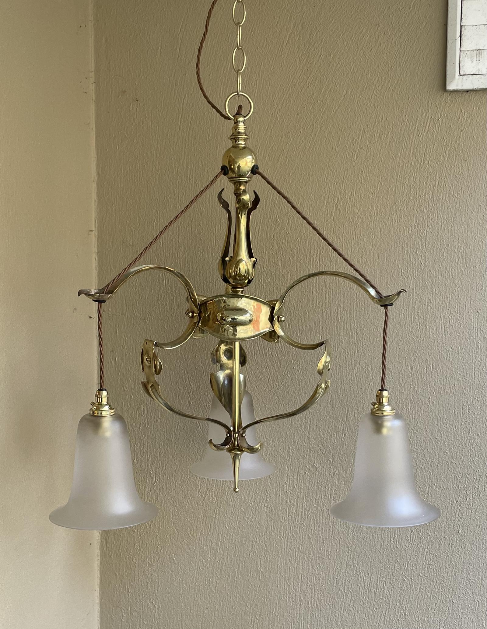 Arts & Crafts Three Arm Brass Chandelier, Registered Design