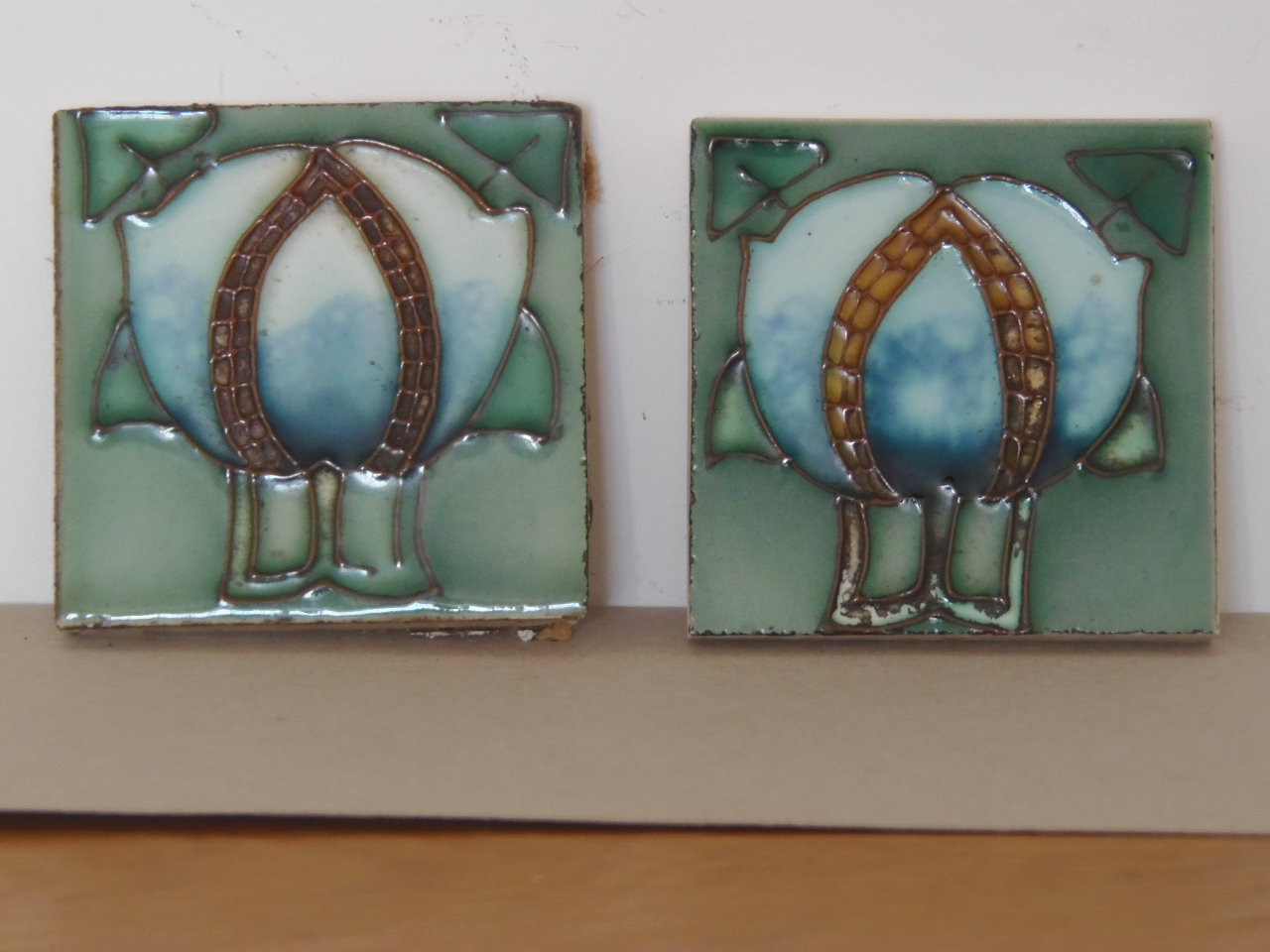 Arts & Crafts Tubelined Pair of Tiles (1 of 1)