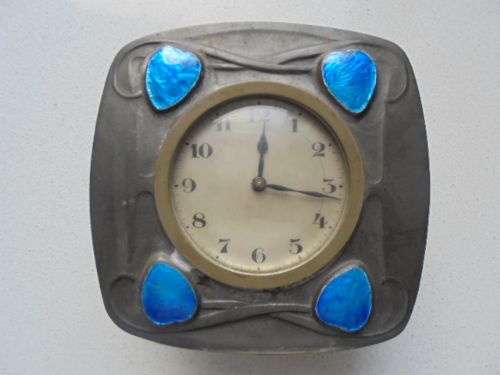 Arts & Crafts Tudric Pewter & Enamel Clock by Archibald Knox for Liberty & Co
