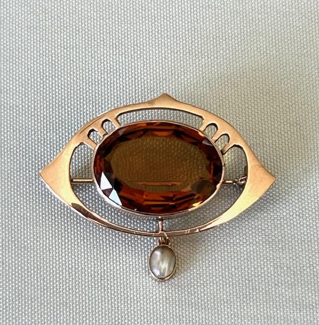 Arts & Crafts Victorian Gold, Topaz & Mother of Pearl Brooch