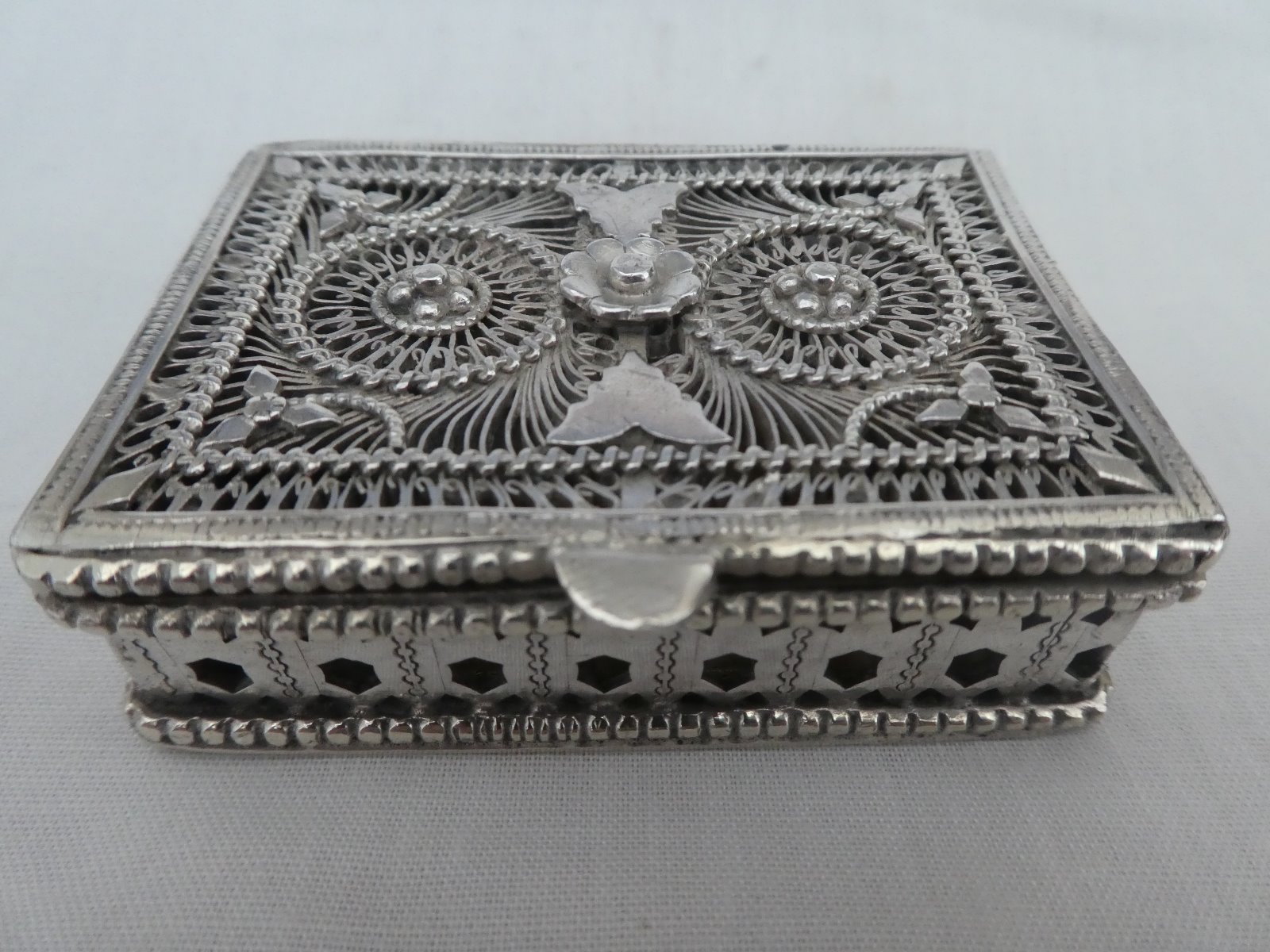 Asian Silver and White Metal Filligre Trinket Box