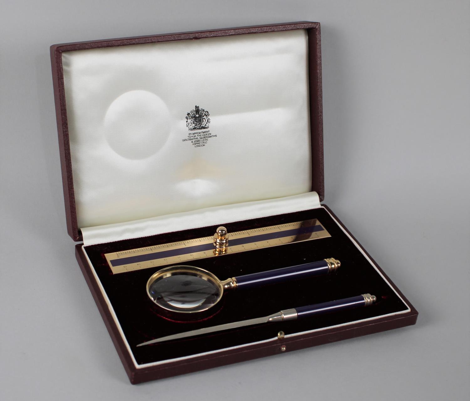Asprey Desk Set, Ruler, Magnifying Glass & Letter Opener