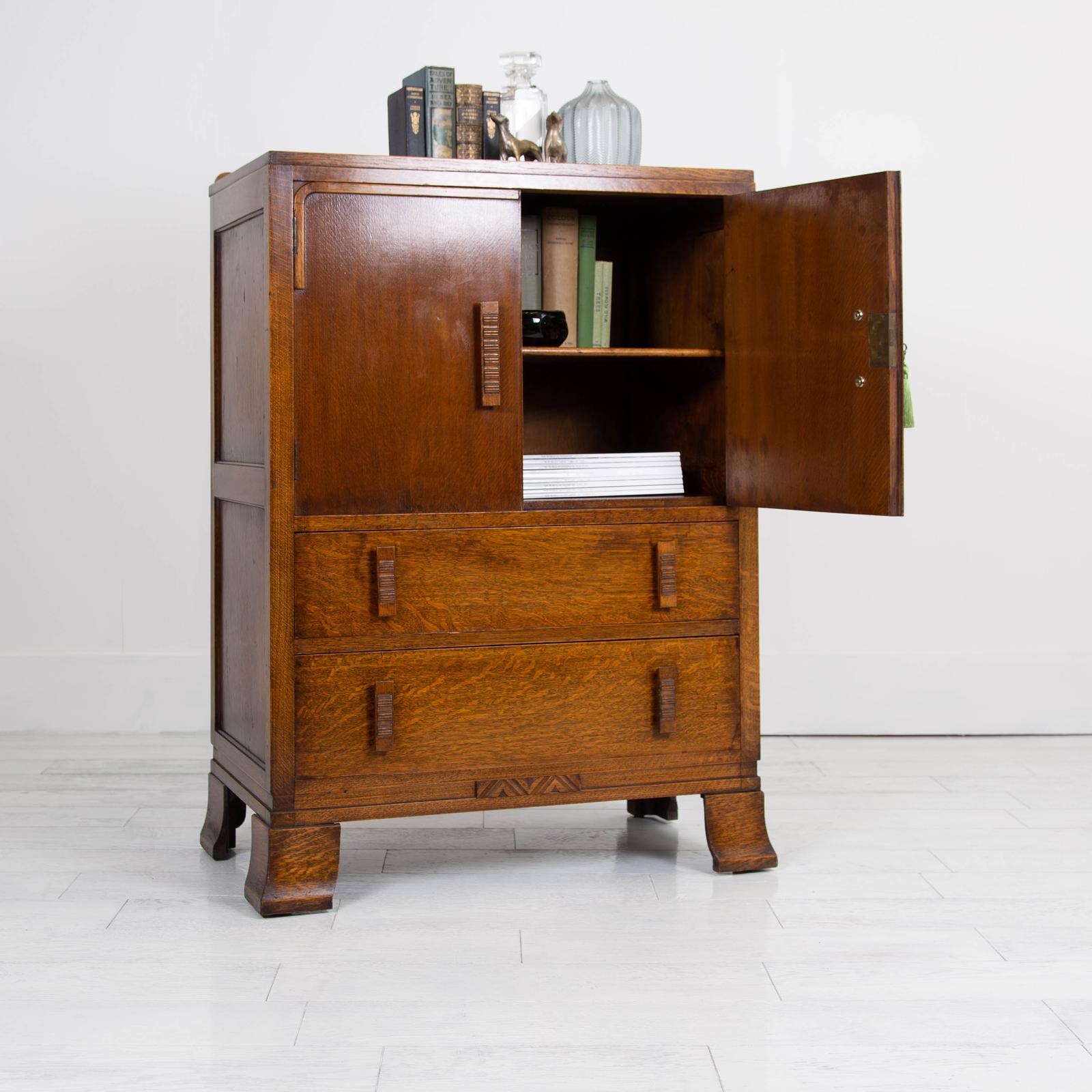 Attractive 1930s Vintage Oak Tallboy 2 Drawer Cabinet