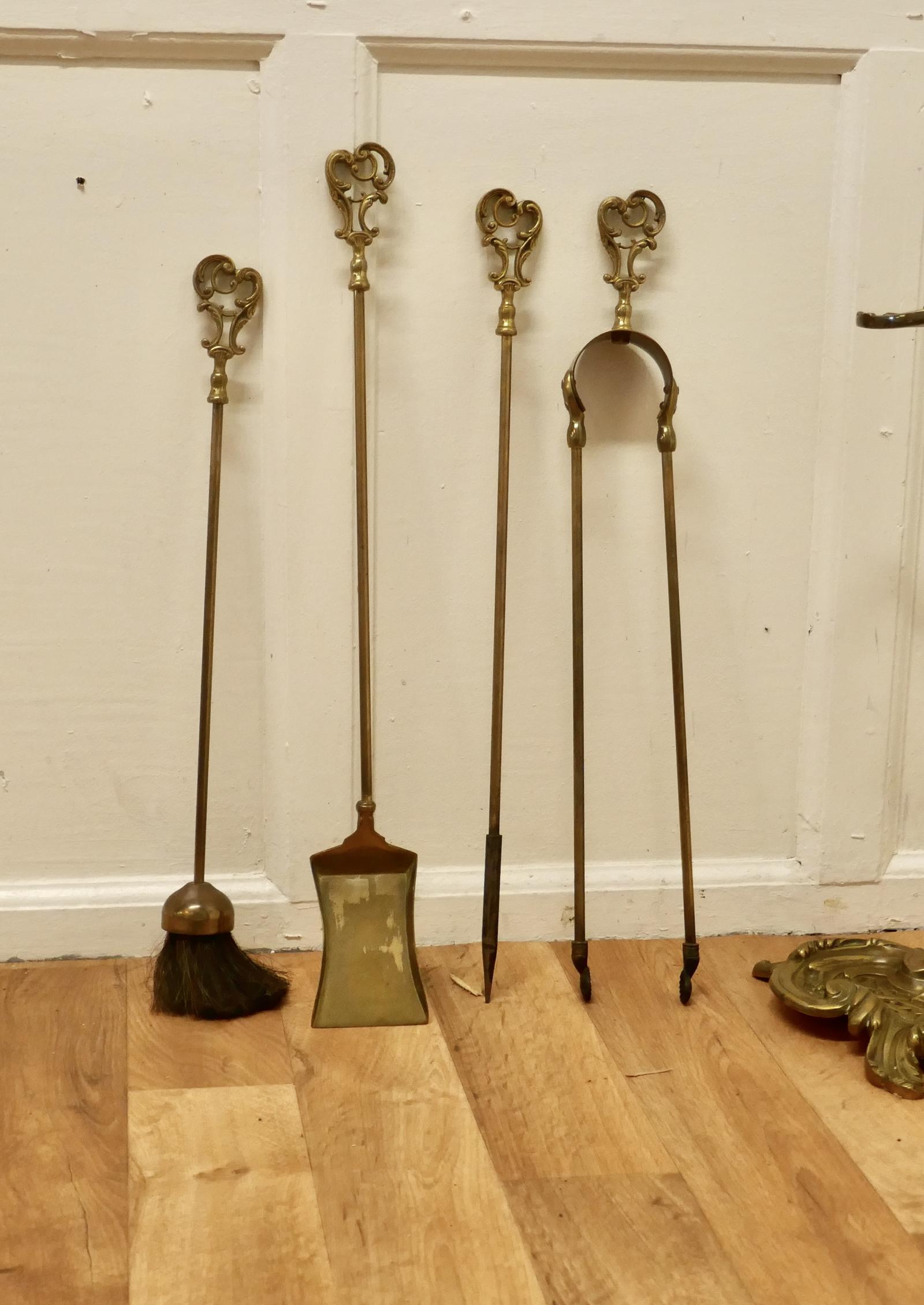 Attractive 19th Century Art Nouveau Brass Fireside Companion Set, Fireside Tools