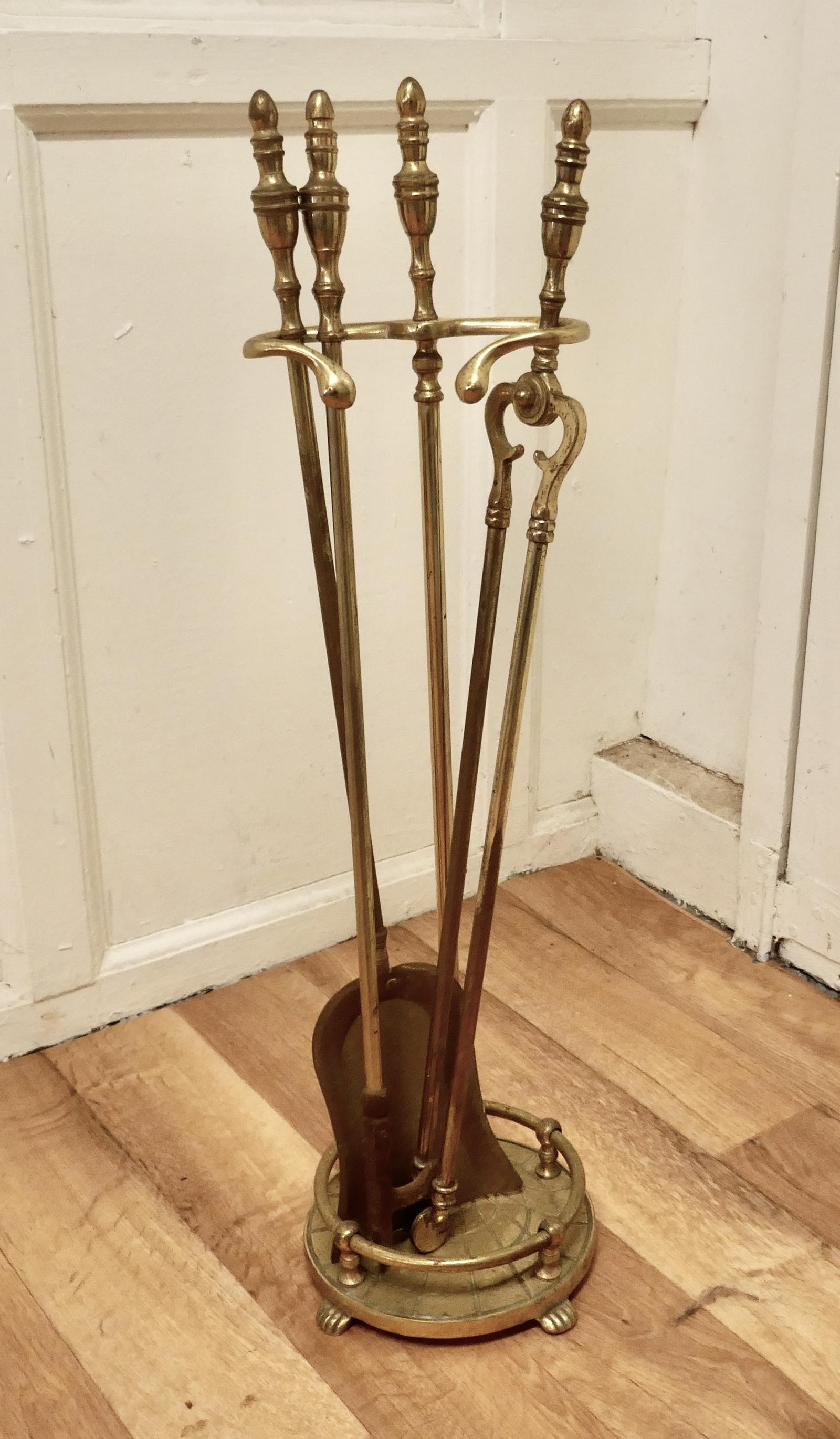 Attractive 19th Century Brass Fireside Companion Set, Fireside Tools