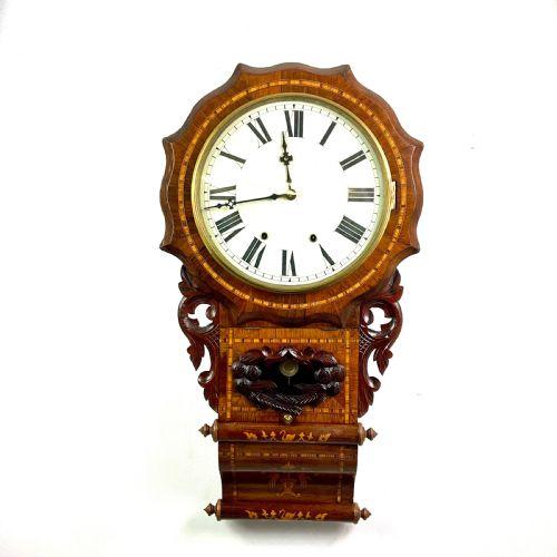 Attractive American Drop Dial Walnut & Inlaid Wall Clock
