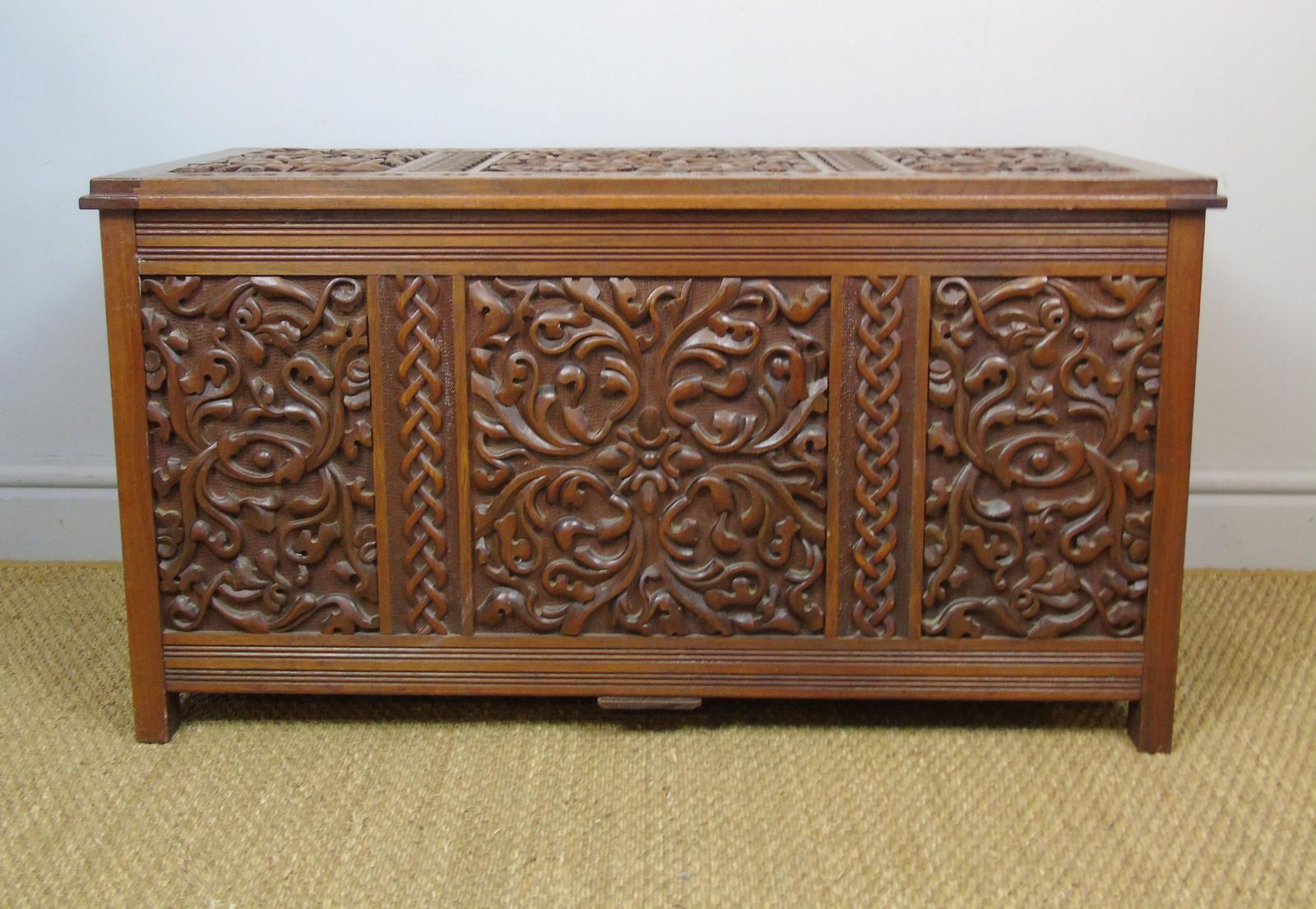 Attractive Arts & Crafts Period Carved Wood Chest (1 of 9)