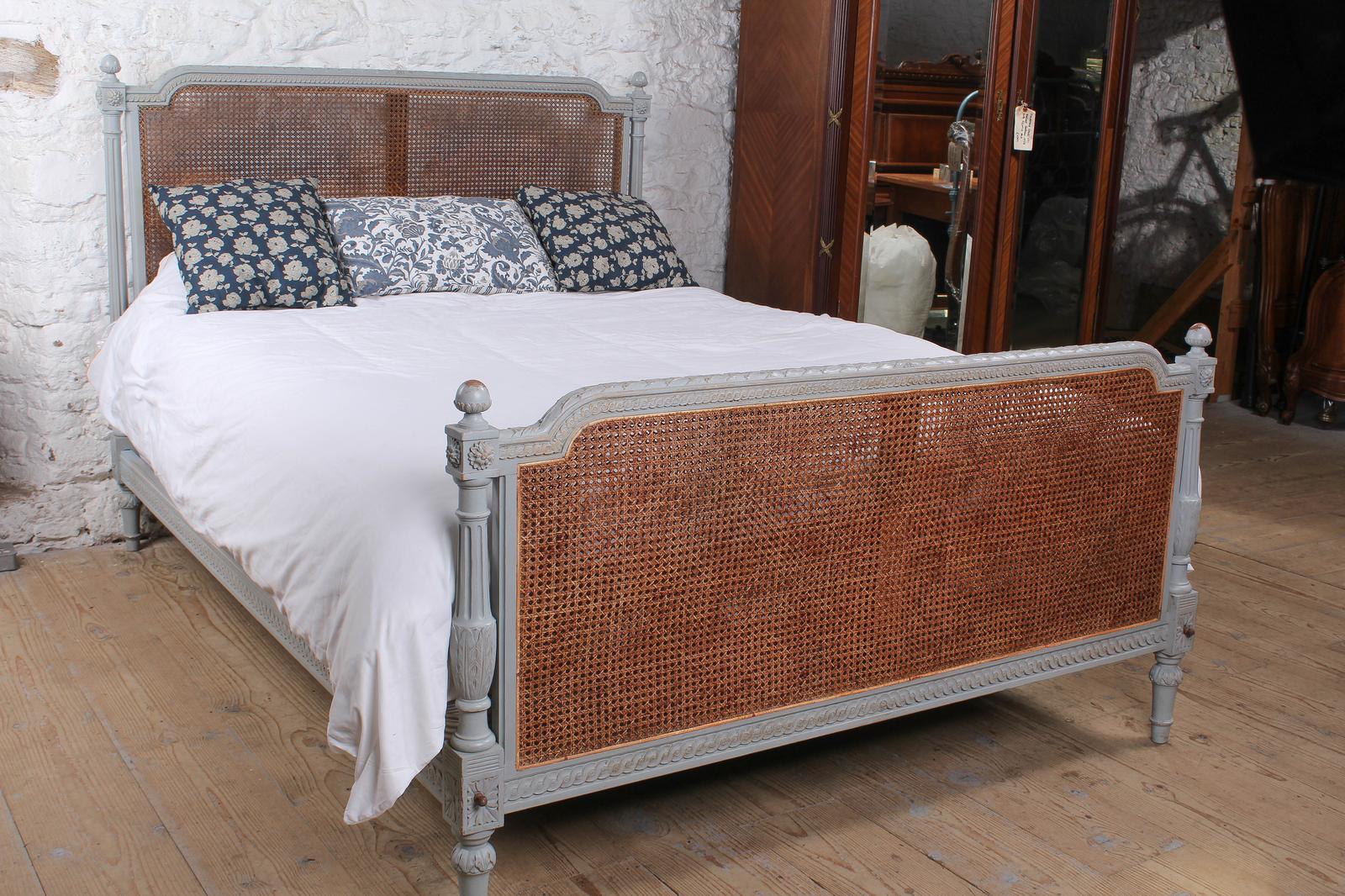 Attractive Carved Aged Painted Caned French King Size Bed (1 of 9)