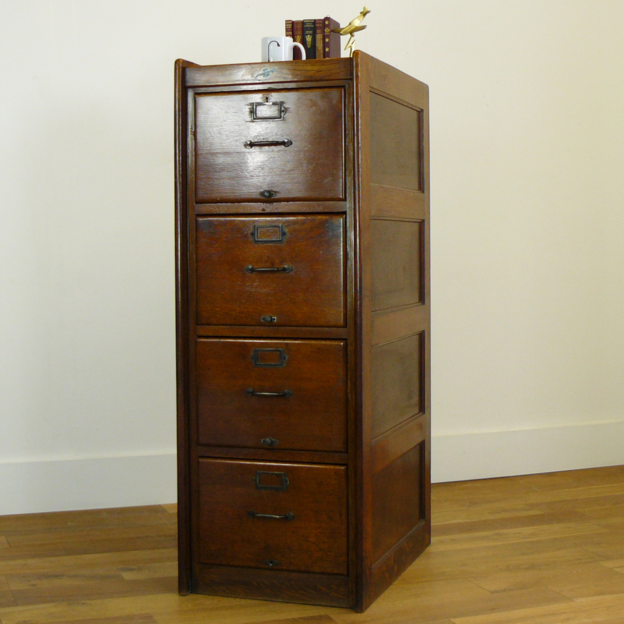 Attractive Early 20th Century English Panelled Oak 4 Drawer Filing Cabinet