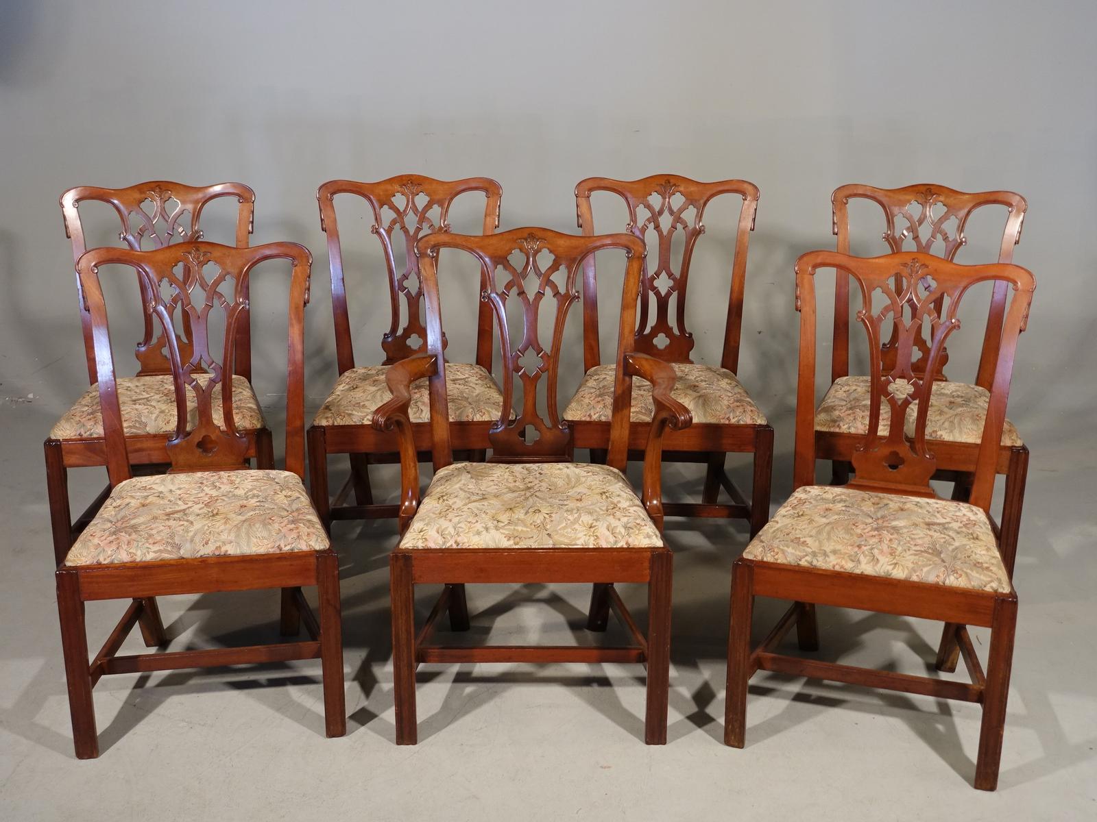Attractive Early 20th Century Set of 7 '6+1' Chippendale Style Mahogany Framed Chairs