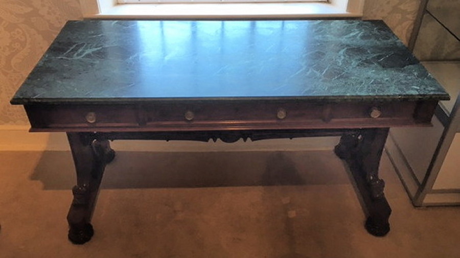 Attractive Early Victorian Mahogany Library Table with Marble Top c.1840 (1 of 1)