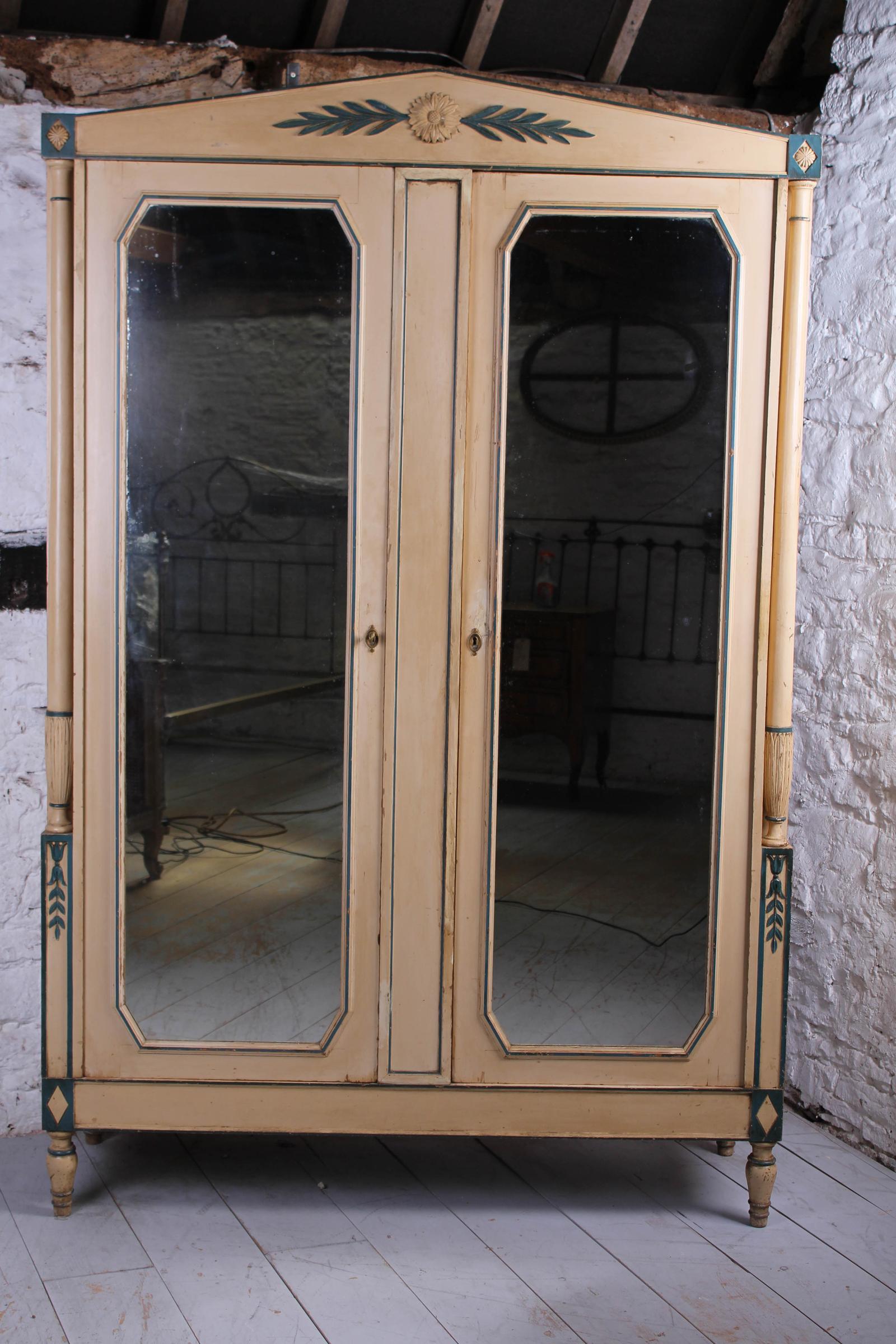 Attractive French Painted Armoire with Mirrored Doors