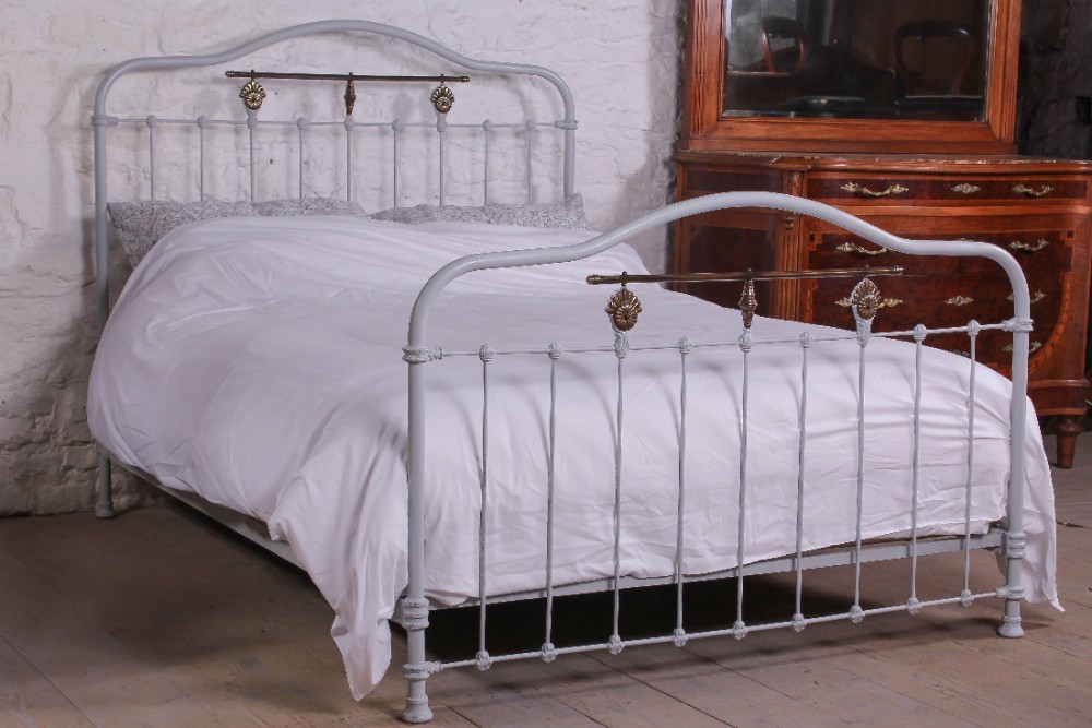 Attractive King Size 5ft French Iron Bed with Brass Detail c.1900