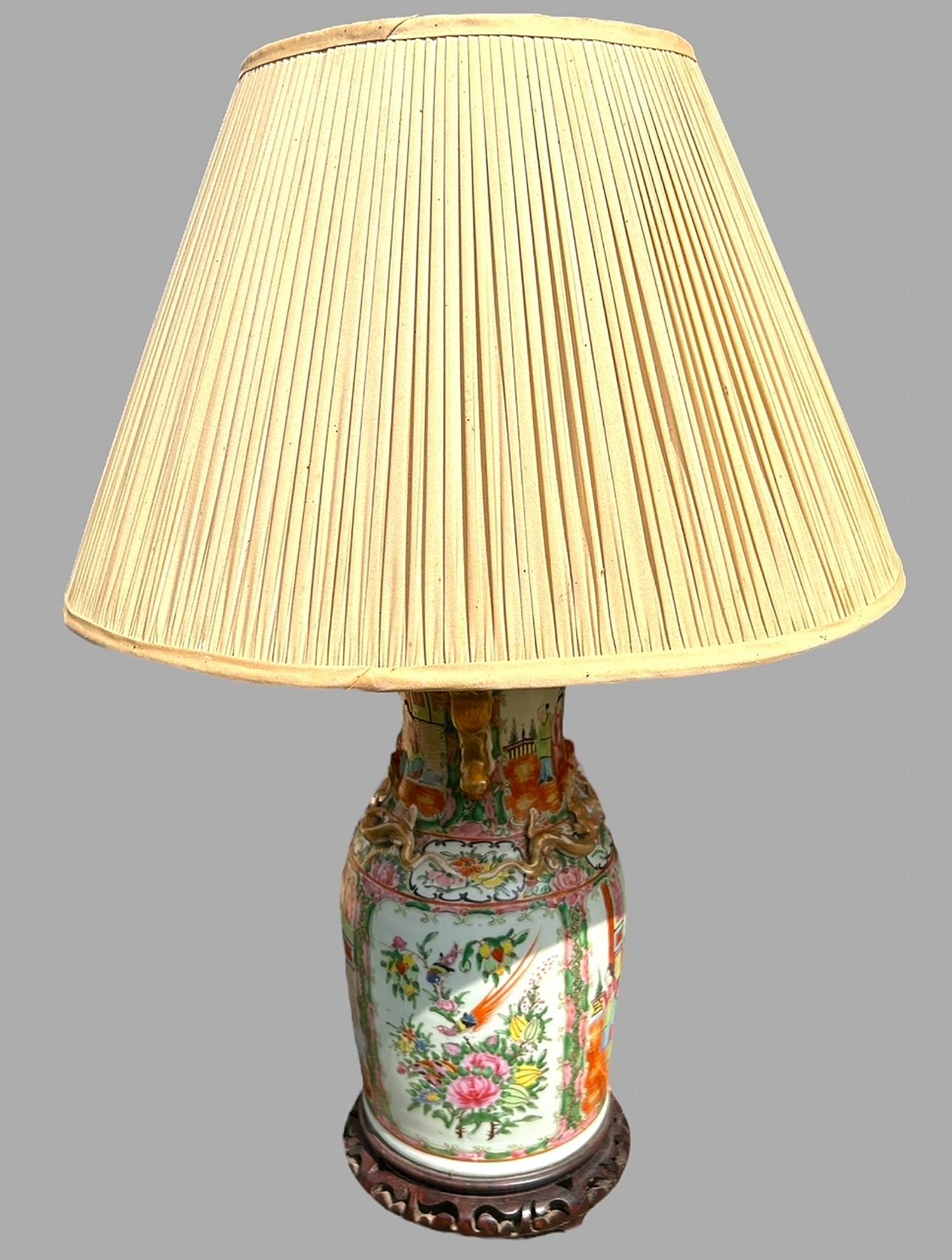 Attractive Late 19th Century Chinese Canton Famille Rose Lamp