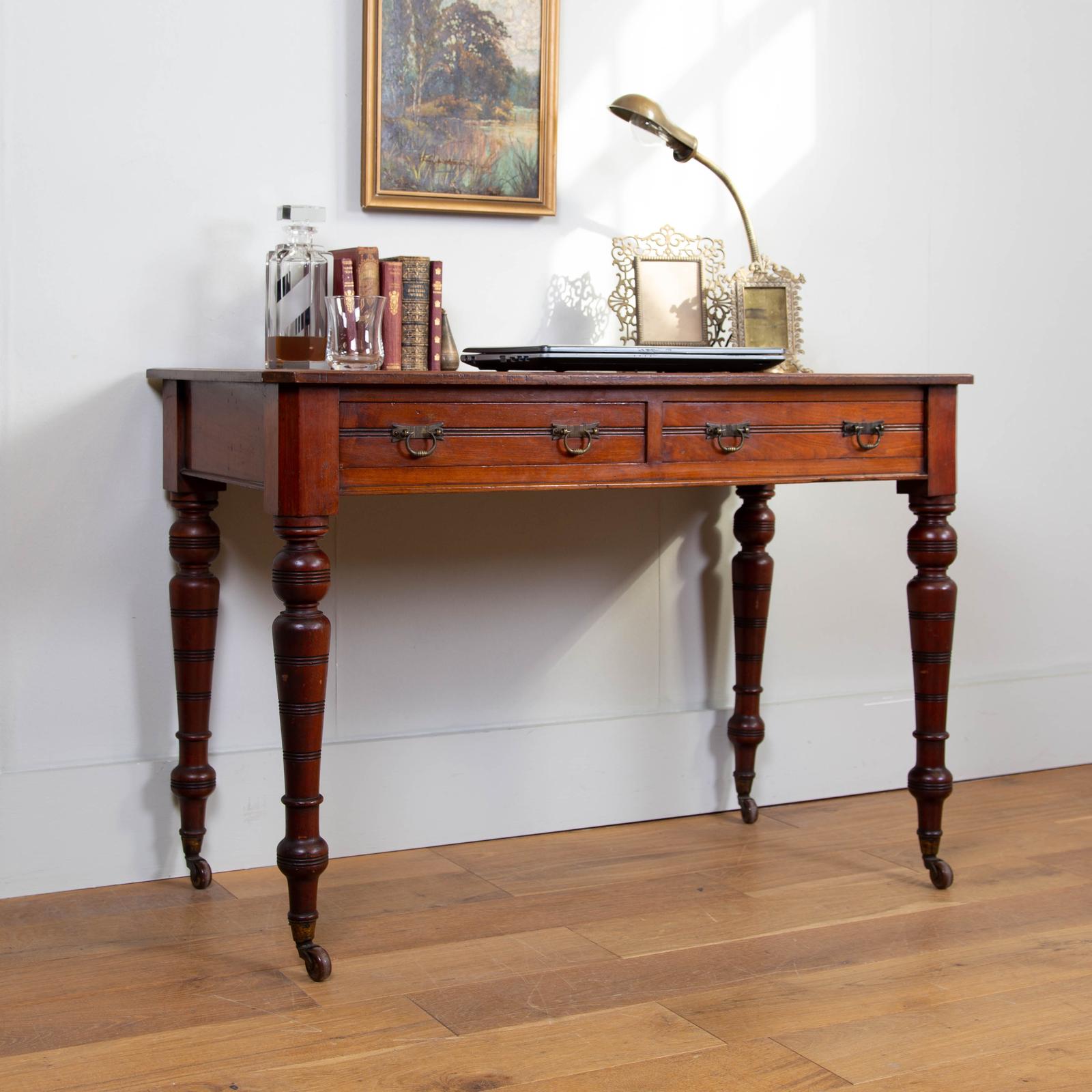 Attractive Late Victorian Two Drawer Table Writing Desk (1 of 12)