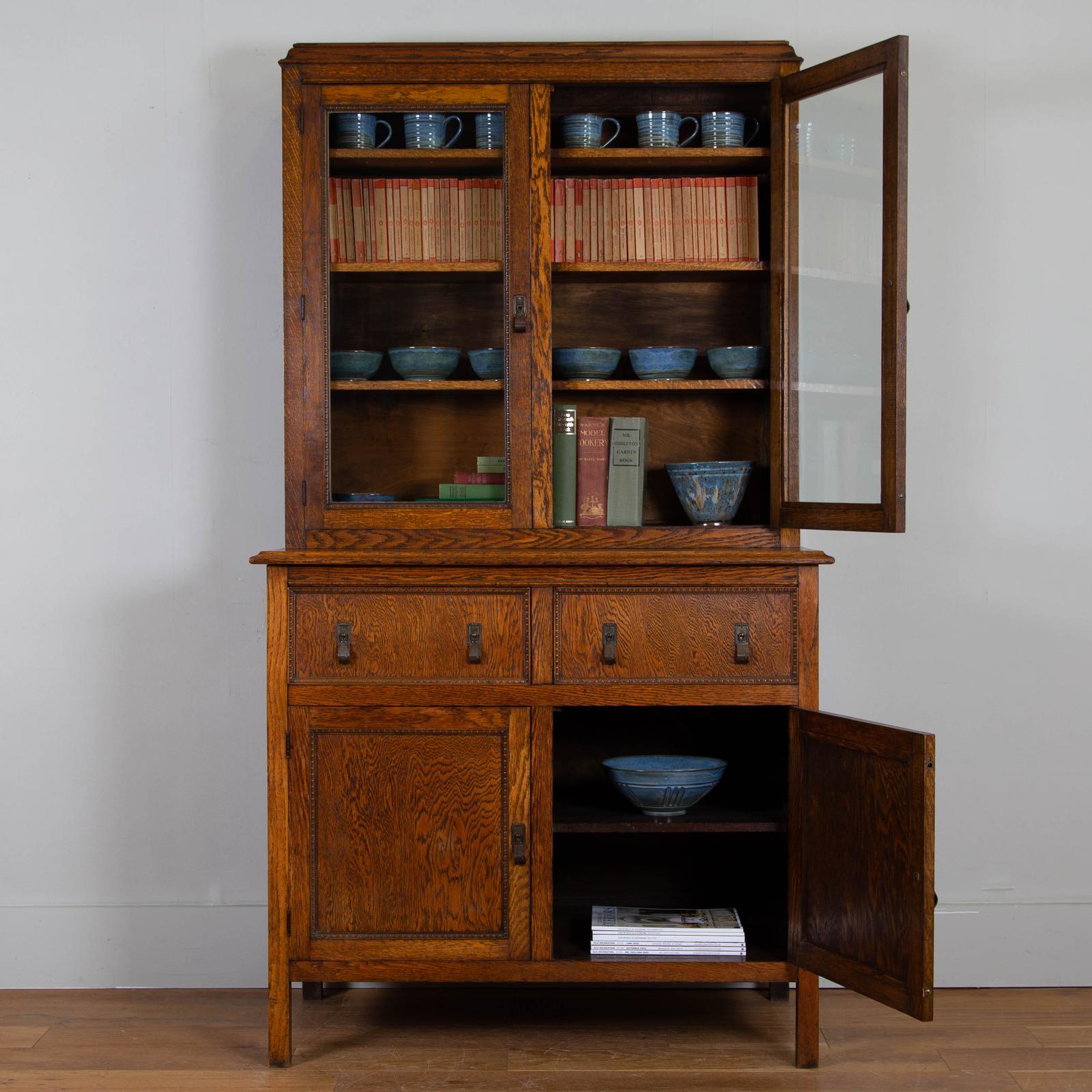 Attractive Oak Glazed Bookcase Cabinet 1930s