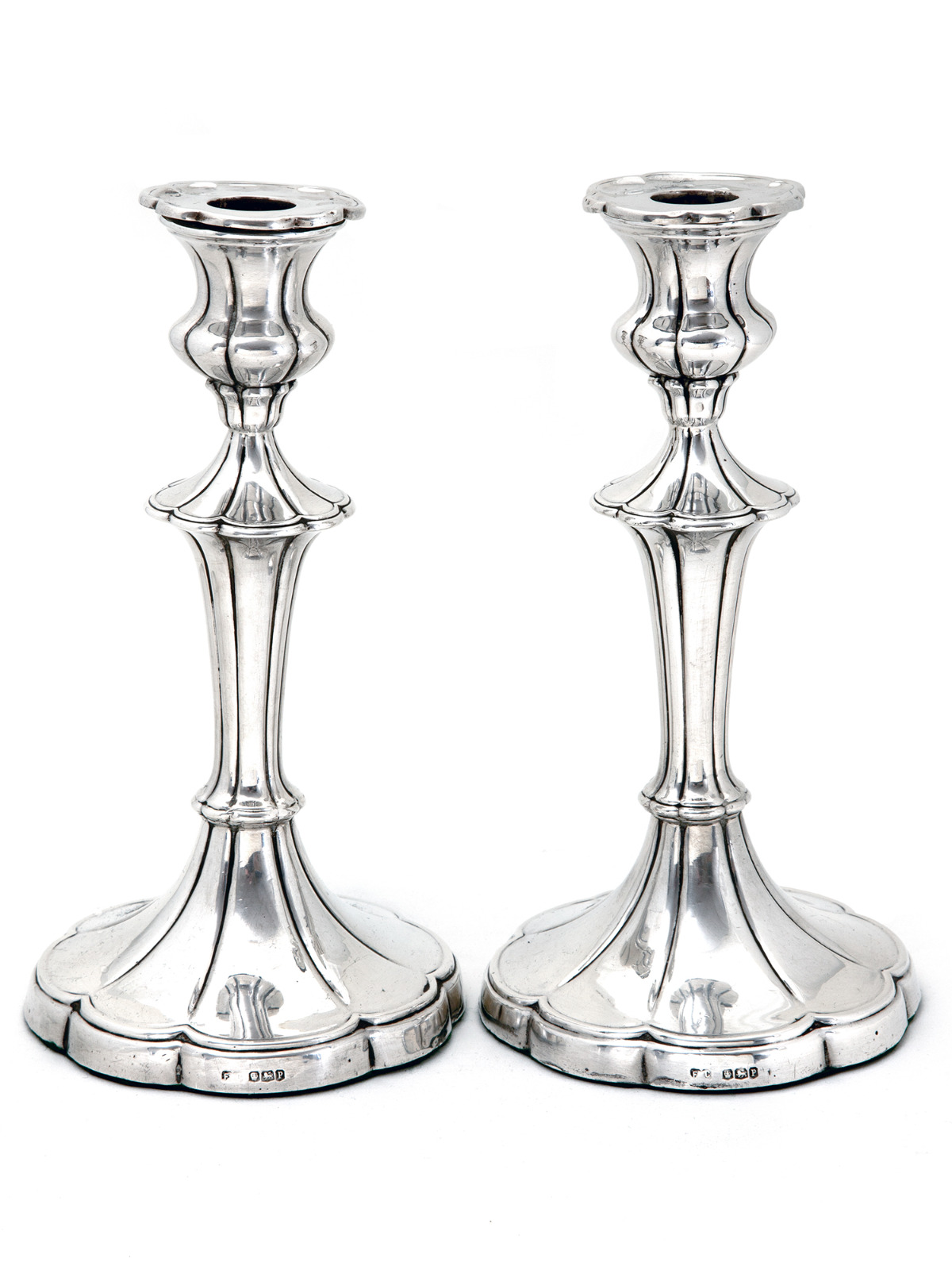 Attractive Pair of Silver Candlesticks with Plain Fluted Columns Leading Down To Fluted Circular Shaped Plain Bases