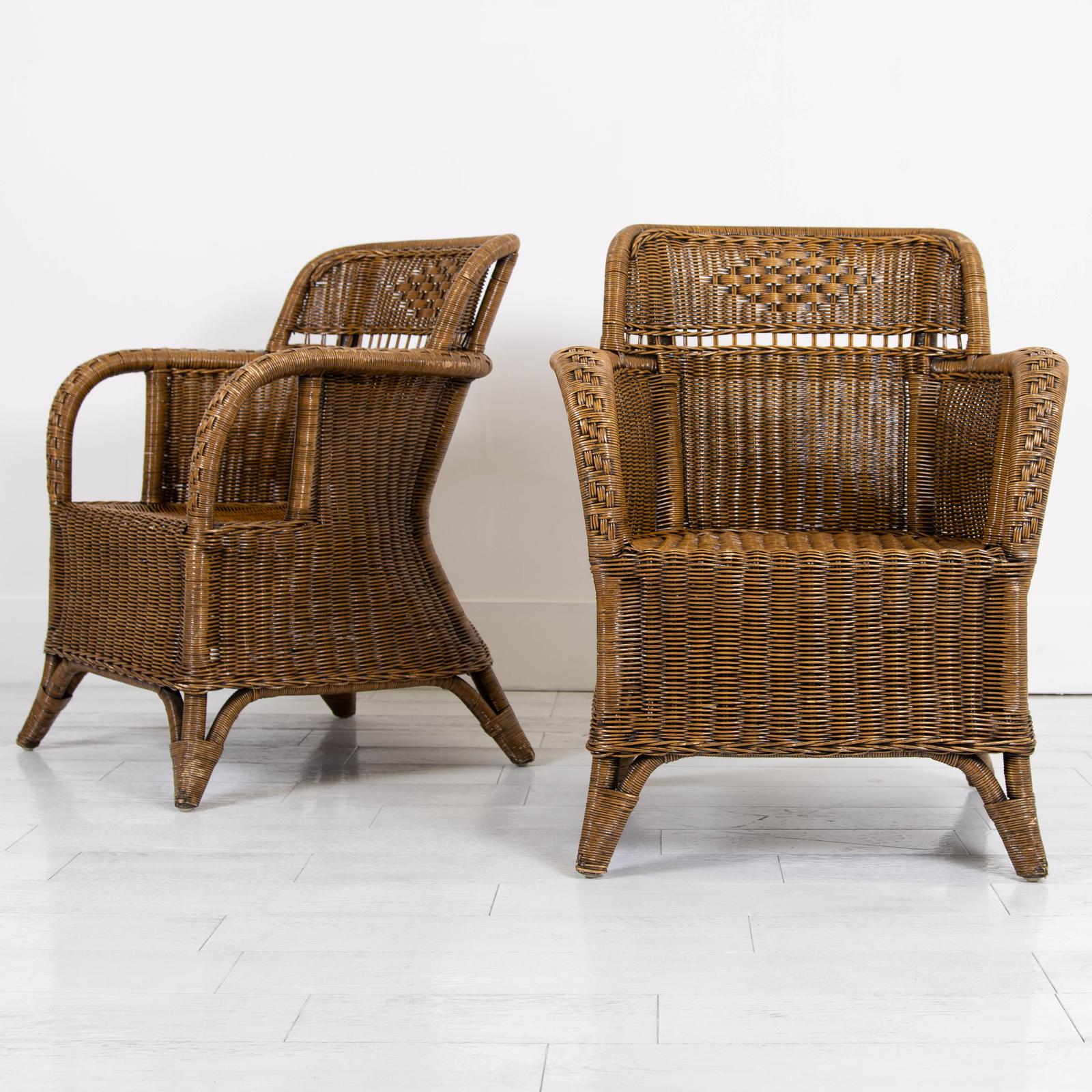 Attractive Pair of Wicker Garden Room Garden Chairs 1930s