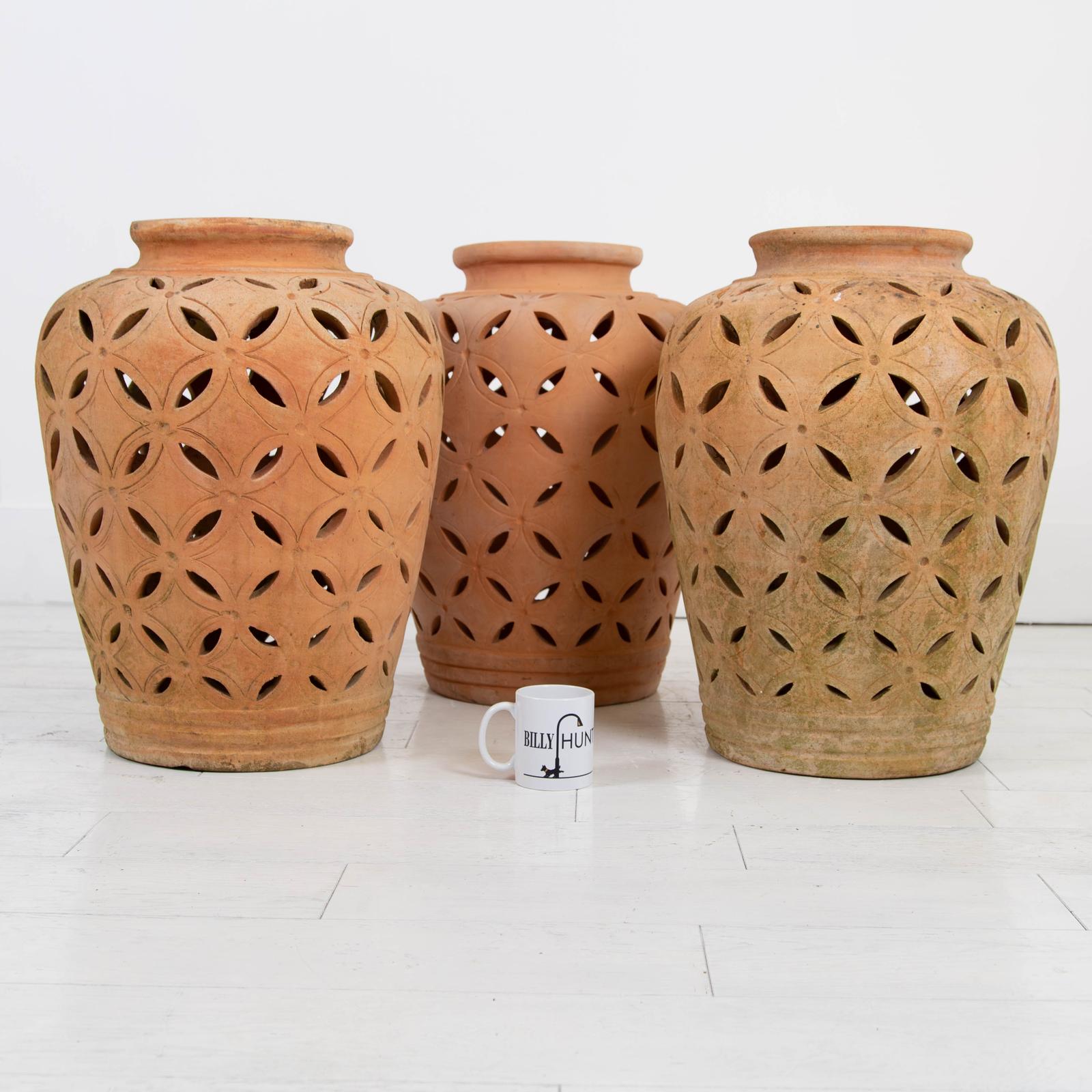 Attractive Set of 3 Large North African Cut Out Garden Vase Urns