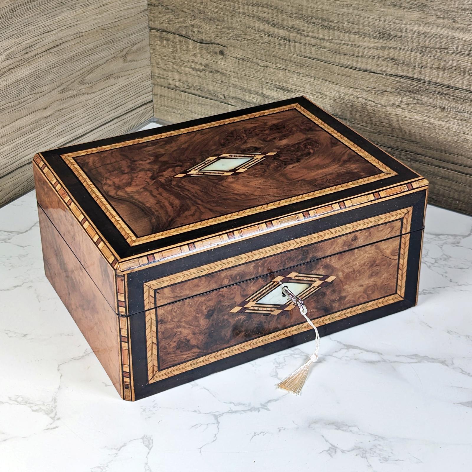 Attractive Victorian Burr Walnut & Inlaid Jewellery Box