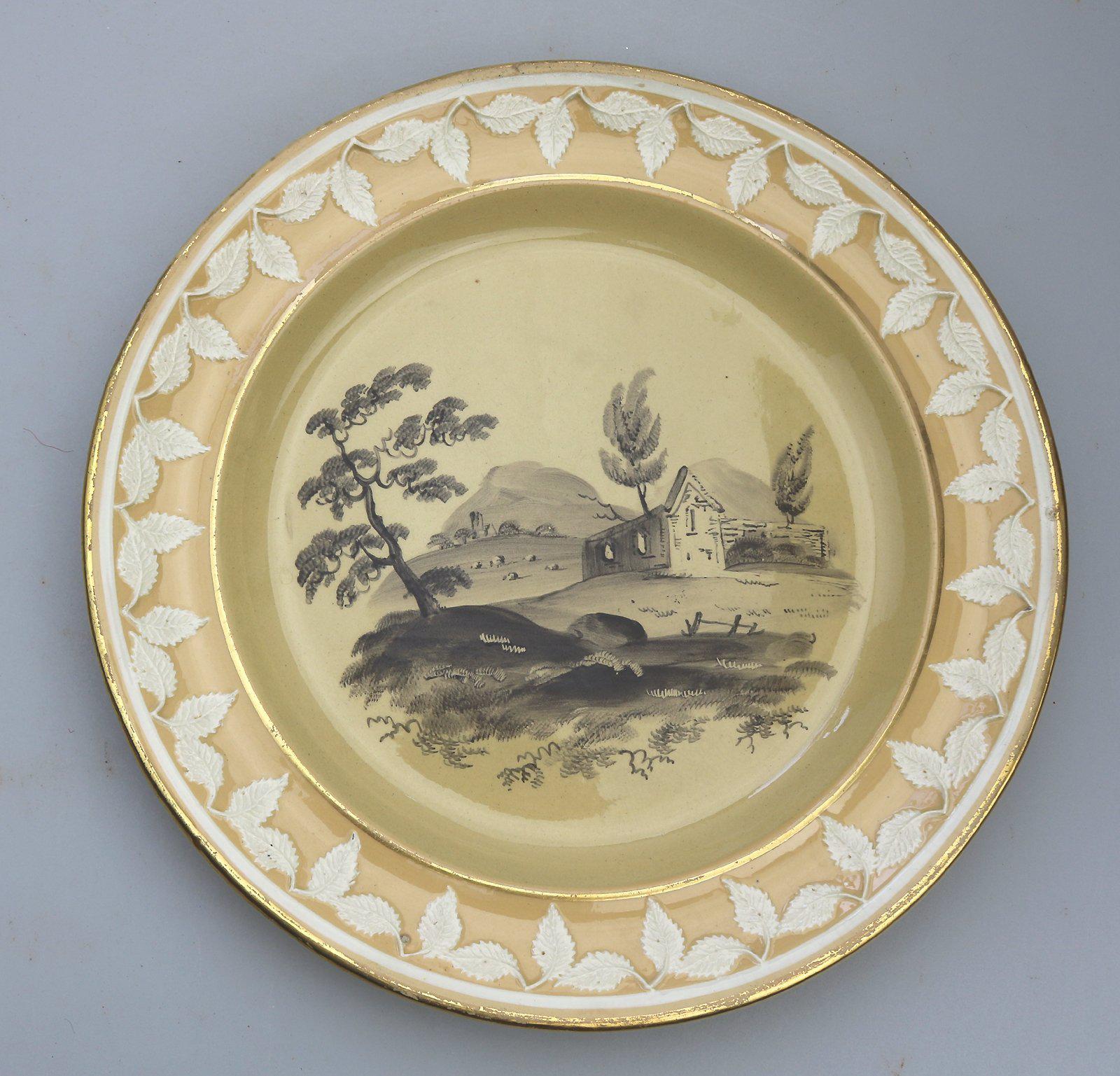 Attributed Thomas Lakin - Rare Staffordshire Drab Porcelain en Grisaille Plate 1790+