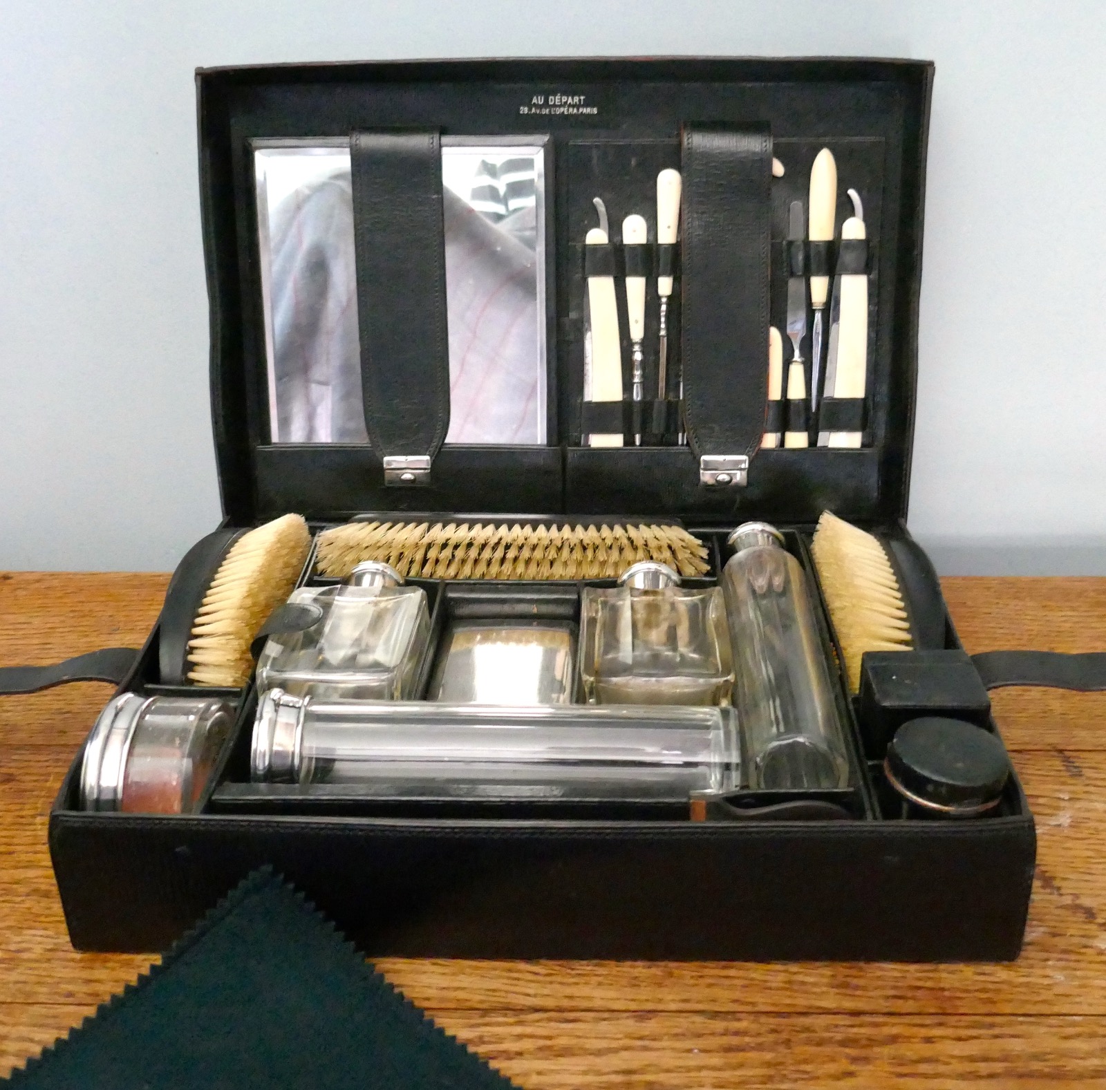 Au Départ Fully Fitted Gentlemans Travelling Dressing Case, Hallmarked Silver