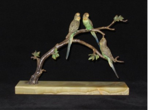 Austrian Cold Painted Bronze Budgerigar Group c.1900