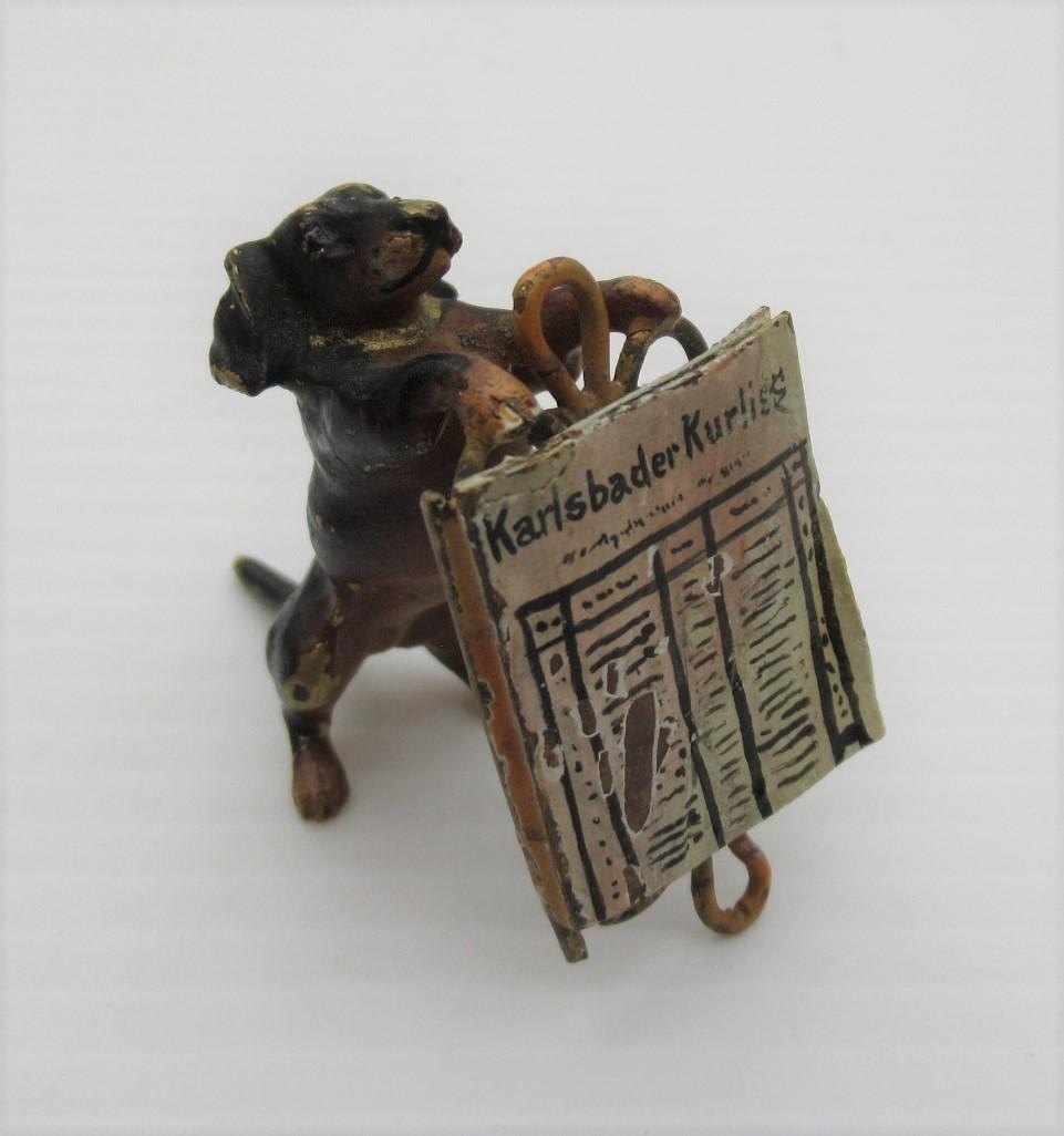 Austrian Cold Painted Bronze, Dachshund with Newspaper, early C20th