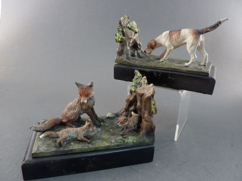 Austrian Cold Painted Bronze Foxes & Hound Bookends