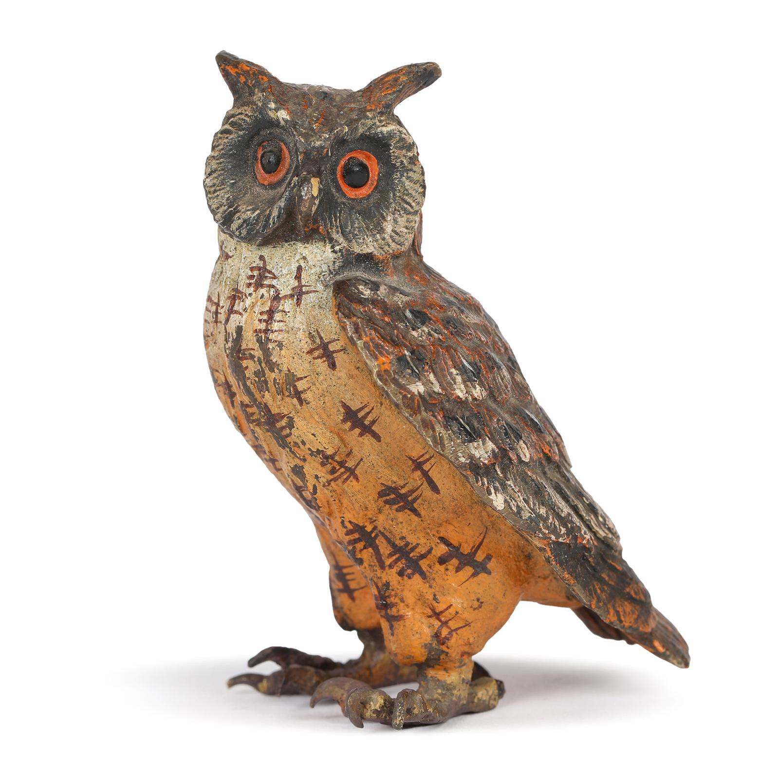 Austrian Cold Painted Bronze Owl Attributed to Franz Xavier Bergman