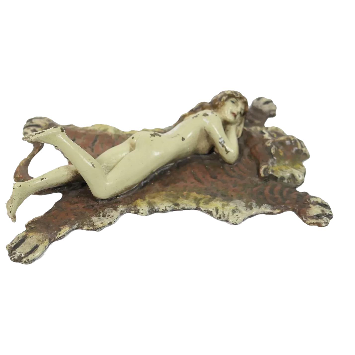 Austrian Franz Bergman Cold Painted Bronze Erotic Nude Lady Reclining Tiger Rug
