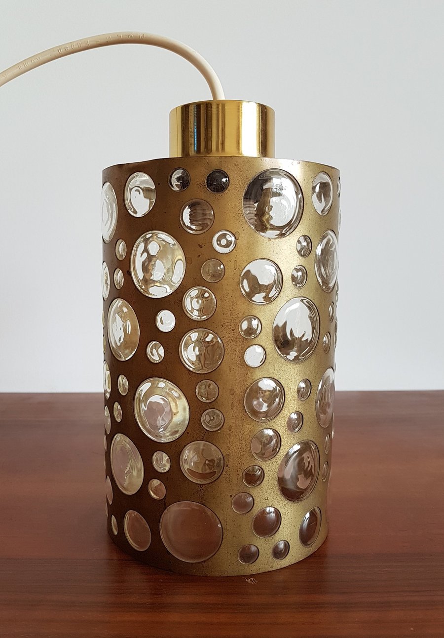 Austrian Rupert Nikoll Rare Mid Century Modern Patinated Brass & Bubble Glass Pendant Lamp