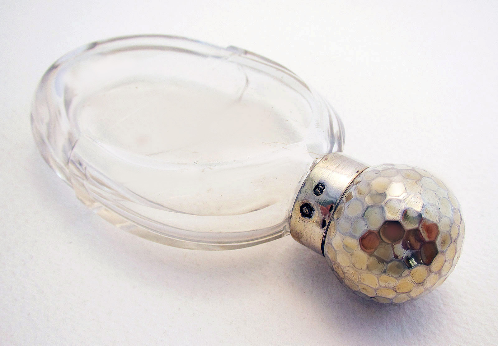 Austro-Hungarian Antique Arts & Crafts Solid Silver 900 Top Lidded Glass Hip Flask. Dressing Table Bottle / Jar / Pot / Box / Container. Austria-Hungary Hallmarks C.1900