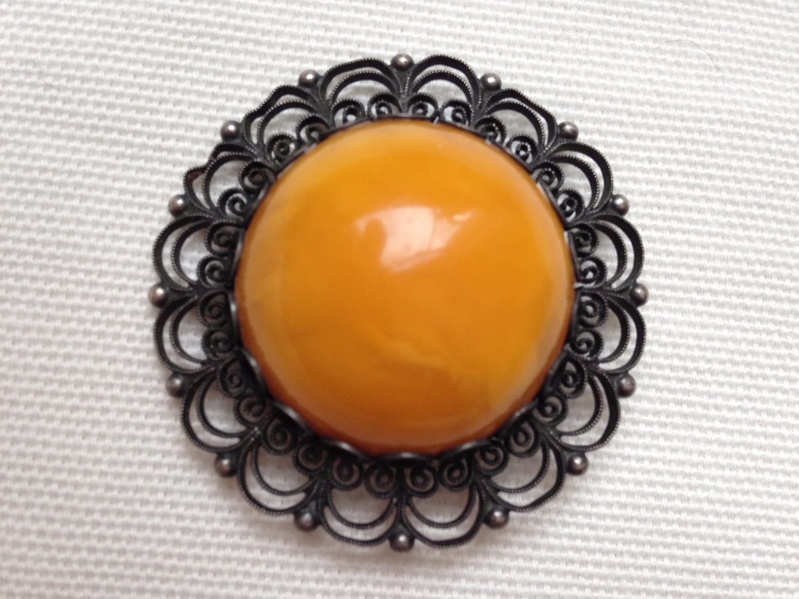 Authentic Solid Russian Silver Brooch Batterscotch Antique Baltic Amber 11g