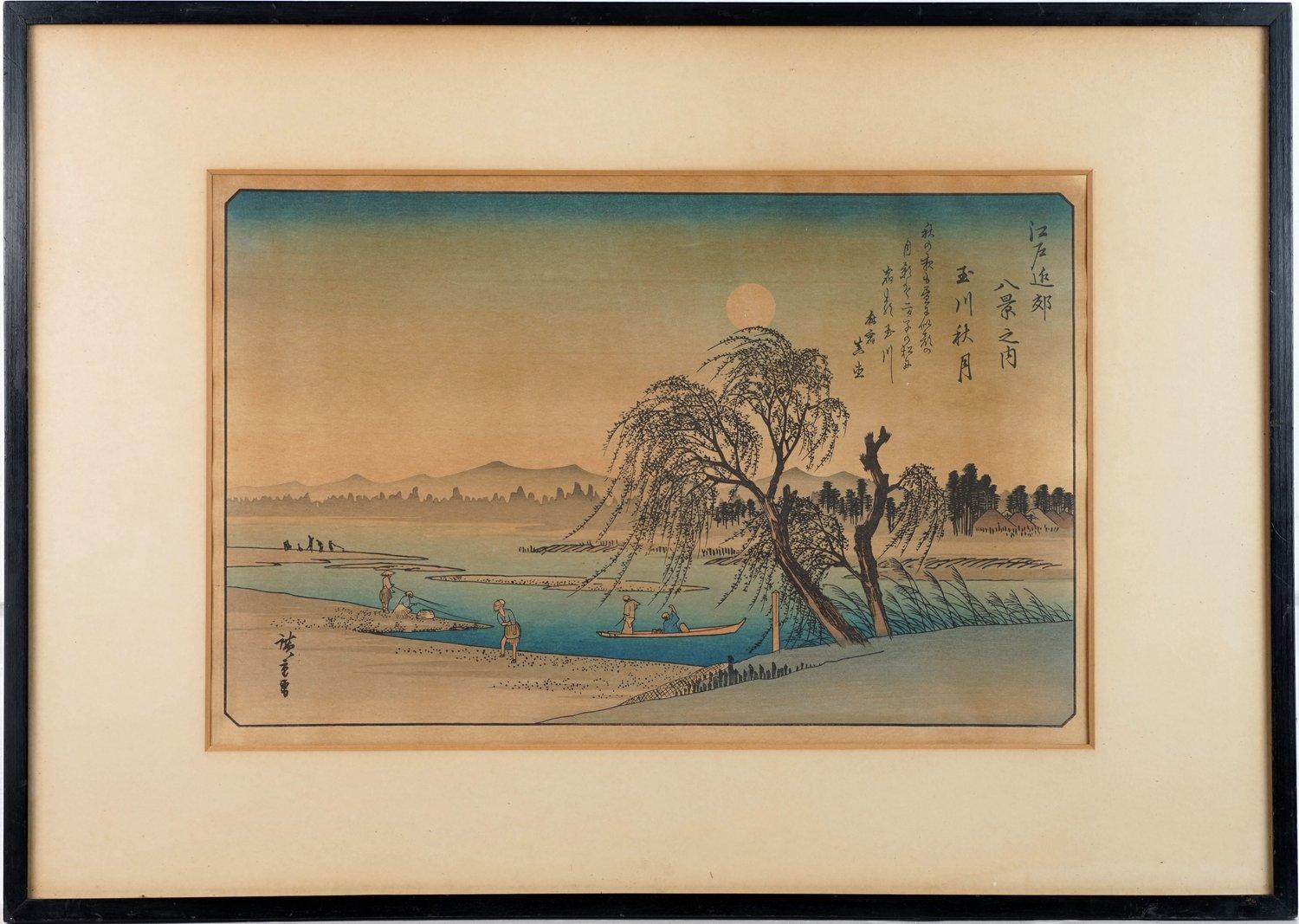 Autumn Moon Over the Tama River, Japanese Woodblock After Hiroshige