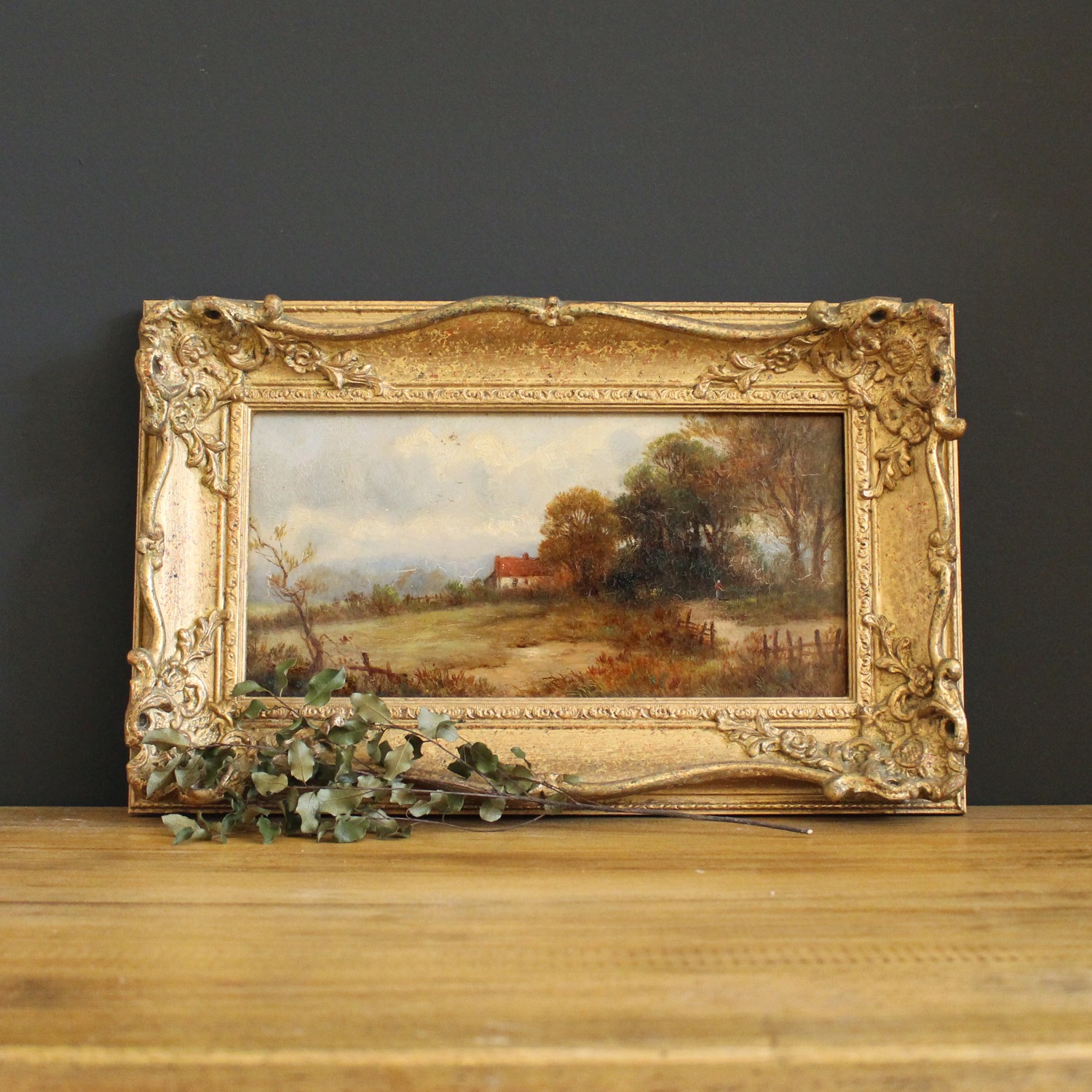 Autumnal English Countryside Scene, Oil On Board, 19th Century