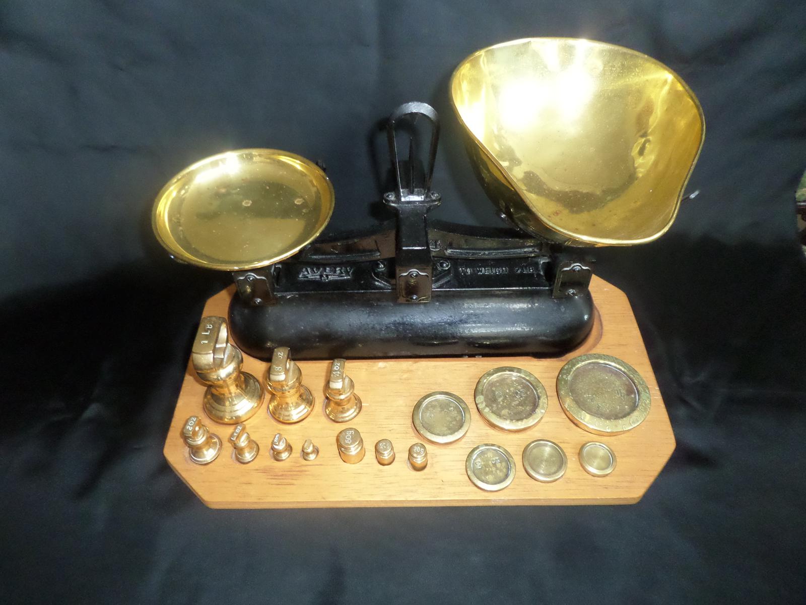 Avery Scales with Variety of Brass Weights on Especially Made Board