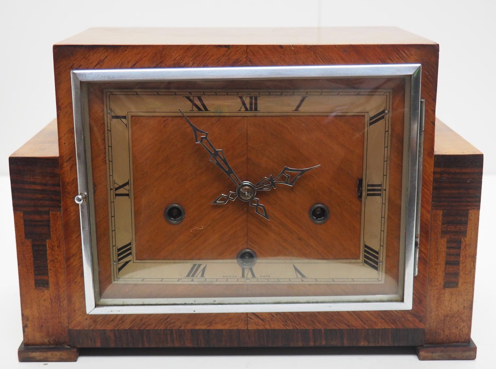 Awesome Inlaid Walnut Antique Westminster Chime Art Deco 8 Day Striking Mantel Clock (1 of 7)