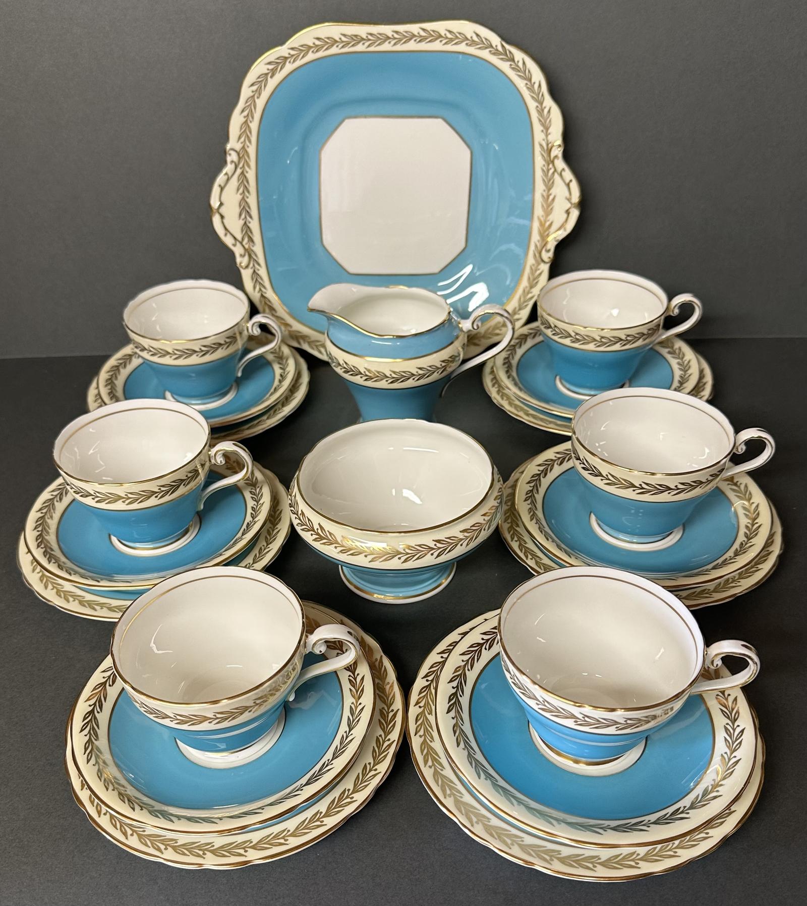 Aynsley Turquoise & Gilt 21 Piece Tea Set